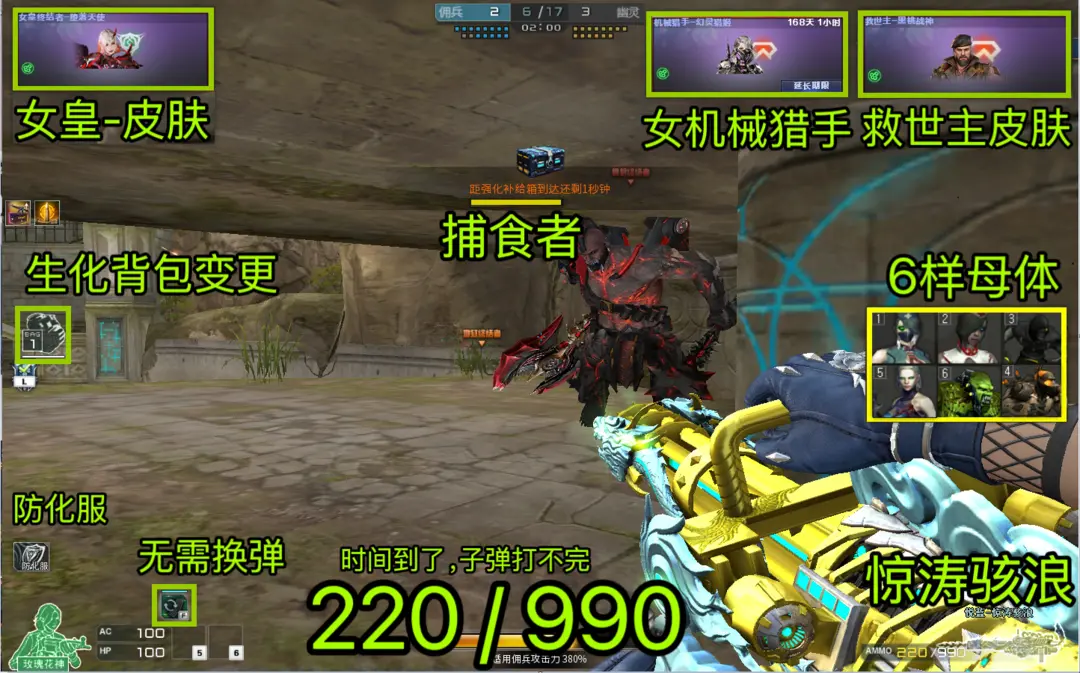 炼狱—百芒骇浪➕音效卡✅毒蜂1200 多子弹很爽✅生化背包✅机械女猎手✅圣拳皮肤✅钢铁皮肤✅6盘6烈