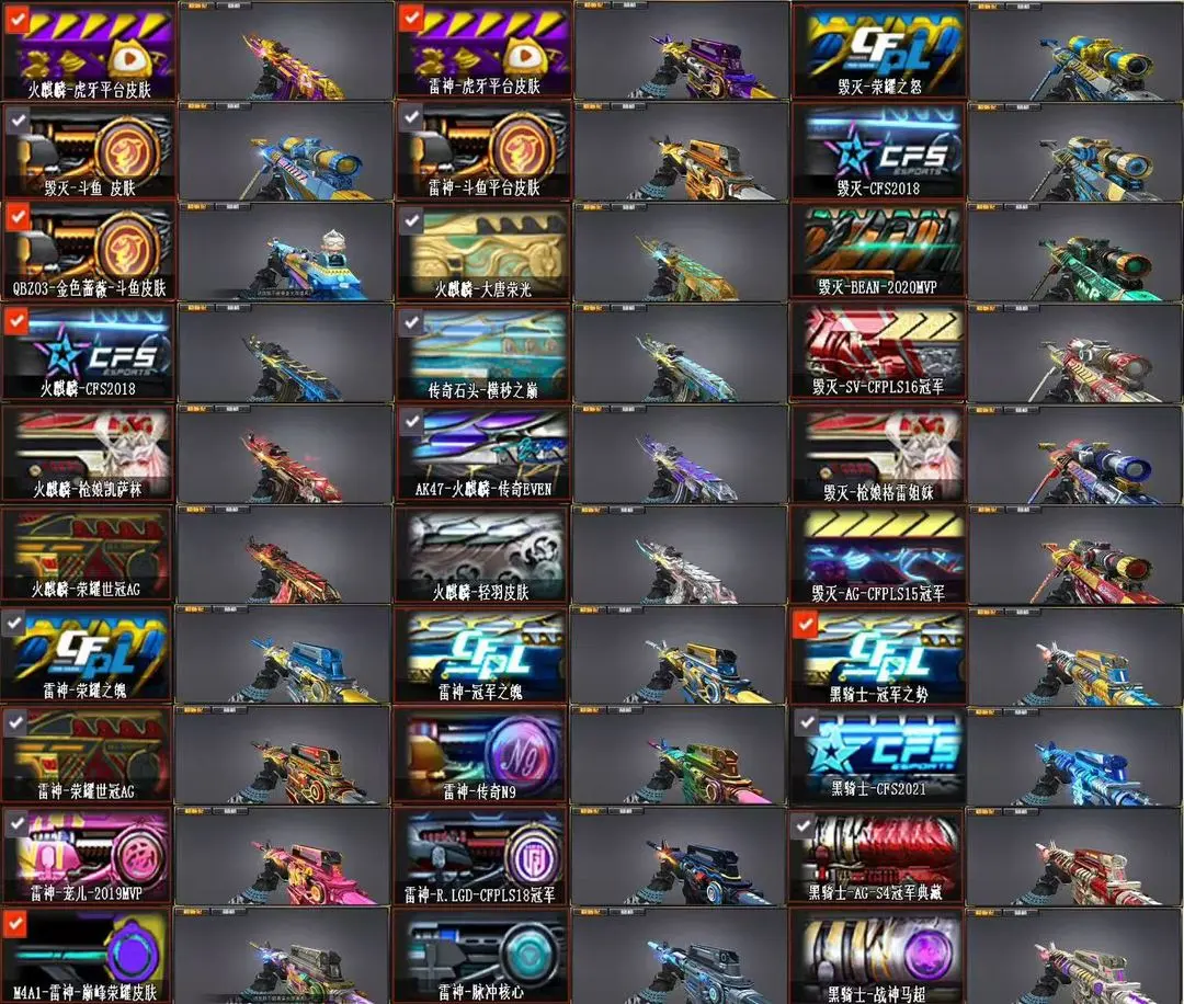 【装备道具】:【传说艾莉莎+传说影煞】【5传说】【幻神8皮带卡】【传说灵眸】【2m200幻神+幻神宠儿+幻神n9+幻神ag冠军+2幻神冠军之幻+幻神周瑜+幻神荣耀世冠白鲨+幻神纸灯龙皮肤+幻神音效卡】【usp雷暴+竞技柯尔特+3世冠柯尔特+冠军之特+2cop堕天神+cop幻灵+cop雷霆王者+炽芒蝶刃】【星神三件套+白虎三件套白虎冠军之虎+觉醒王者风神+王者星霆】【m200竞技荣光】【传说夜影+传说梦魇】【夜魔套+竞技荣光套+云悠悠】【荣耀世冠套】【白虎+玄武+朱雀】【觉醒王者火魄+王者炎心★qbz王者蔷薇+王者芳薇+王者风武+王者凤吟】【金色蔷薇斗鱼+毁灭斗鱼+雷神斗鱼平台+雷神虎牙平台+火麒麟虎牙平台+星神呛娘默+星神璀璨+星神冠军之星+星神破竹皮肤★qbz荣耀世冠白鲨★qbz巅峰荣耀+金色蔷薇纸灯龙+毁灭荣耀之怒+毁灭2018+毁灭sv冠军+毁灭呛娘+毁灭2020mvp+毁灭ag冠军+冠军之魄+荣耀之魄+雷神荣耀世冠+传奇n9+雷神宠儿+雷神白鲨+雷神lgd冠军+雷神巅峰荣耀+火麒麟2018+火麒麟荣耀世冠+火麒麟枪娘+轻羽凌霄+晴雅星神音效卡+炼狱音效卡+白虎音效卡蔷薇音效卡