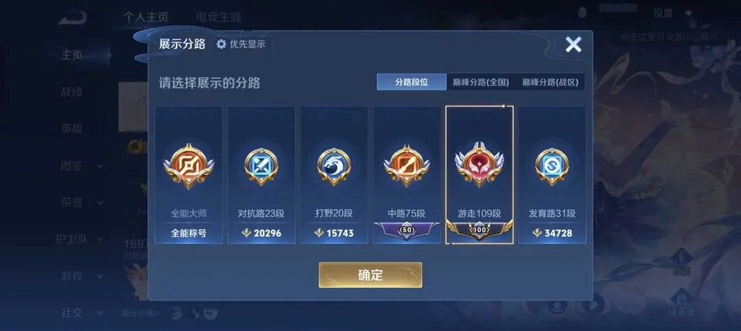 在榜109段游走省3火舞绝版巅峰大国中路巅峰万强20国服瑶满天幕按键女号不禁言马年限定全套荣耀V10