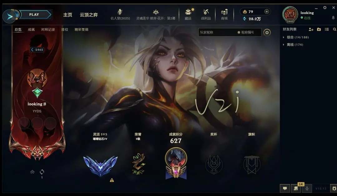 | 角色: looking#0520 | 等级: 2764级 华贵铂金II |