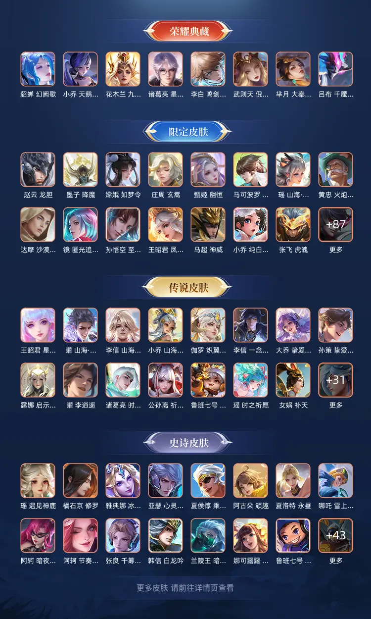 本游戏账号: V10用户,基础段位:永恒钻石II,英雄多,皮肤多。典藏皮肤7个,感受典藏皮肤带来的优质体验快感,FMVP皮肤8个,尽情享受FMVP皮肤带来的主角光环, 私人所属英雄皮肤有:貂蝉 幻阙歌||花木兰 九霄神辉||诸葛亮 星域神启||李白 鸣剑·曳影||武则天 倪克斯神谕||小乔 天鹅之梦||芈月 大秦宣太后艾琳 觅芳踪||诸葛亮 鹤羽星尊||澜 电玩·雷克斯||安琪拉 追逃游戏||亚瑟 追逃游戏||张飞 百相守梦||妲己 青丘·九尾||公孙离 记忆之芯||夏洛特 浮生妄||干将莫邪 画中仙||花木兰 燃星之曲||虞姬 无限倾心||项羽 无限倾心||伽罗 炽翼辉光||狄仁杰 超时空战士||孙悟空 齐天大圣||达摩 黄金狮子座||曜 山海·苍雷引||李信 山海·炽霜斩||小乔 山海·琳琅生||李白 诗剑行||狄仁杰 神器·狴犴令||上官婉儿 神器·万象笔||后羿 黄金射手座||不知火舞 绯月行||王昭君 星穹之声||百里守约 碎云||橘右京 枫霜尽||娜可露露 前尘镜||