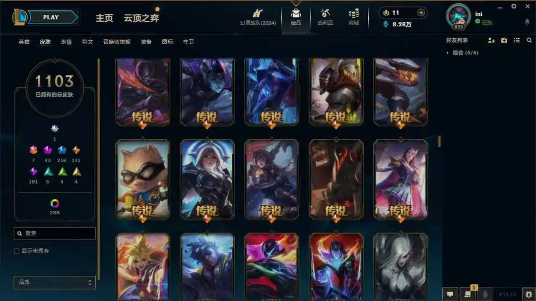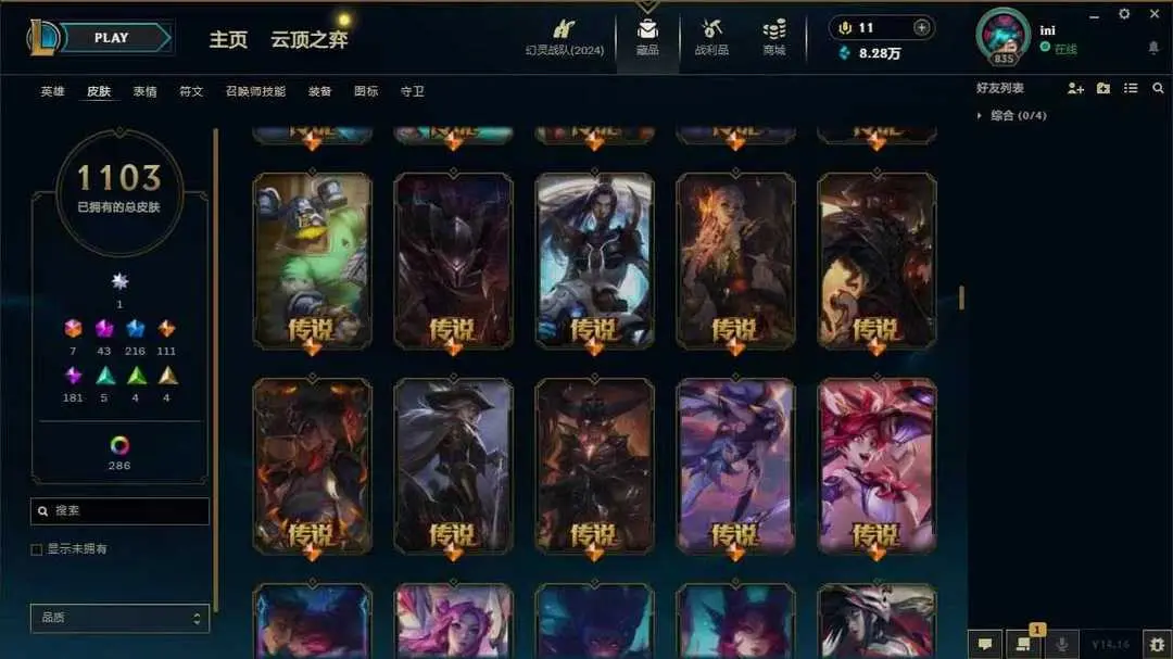 黑玫真实1500皮⚡圣堂佛耶戈⚡踏雪寻梅莉莉娅⚡️圣堂金克丝⚡️云顶水晶格温至臻锐雯⚡️云顶23神话