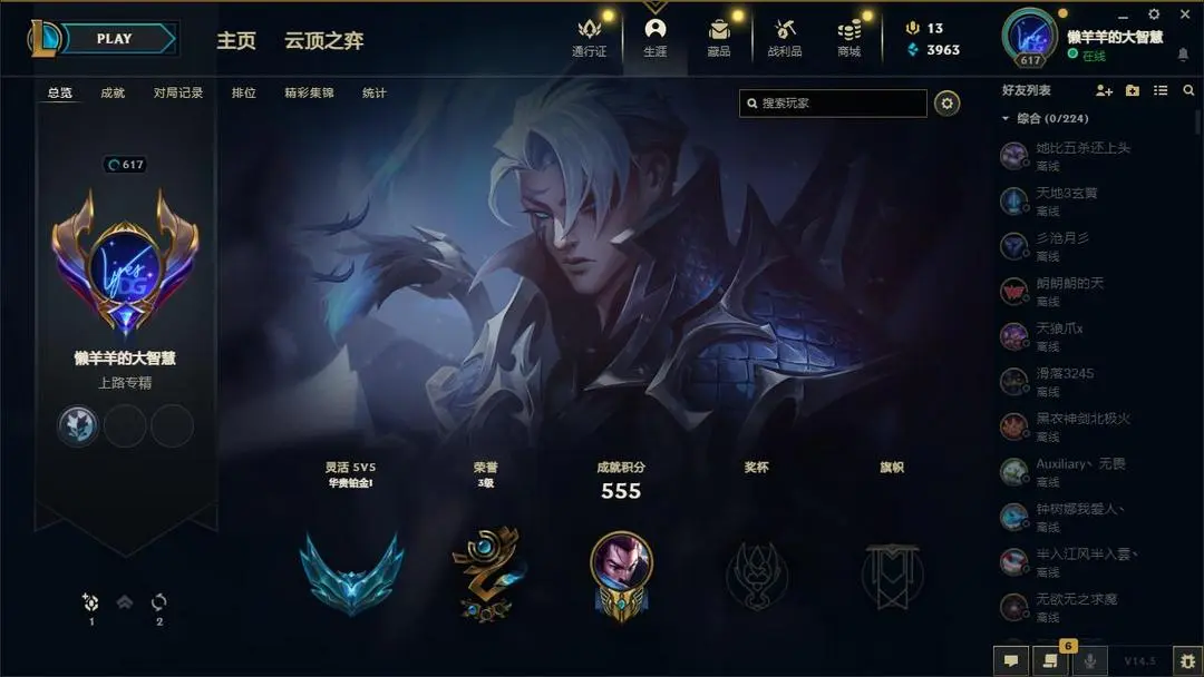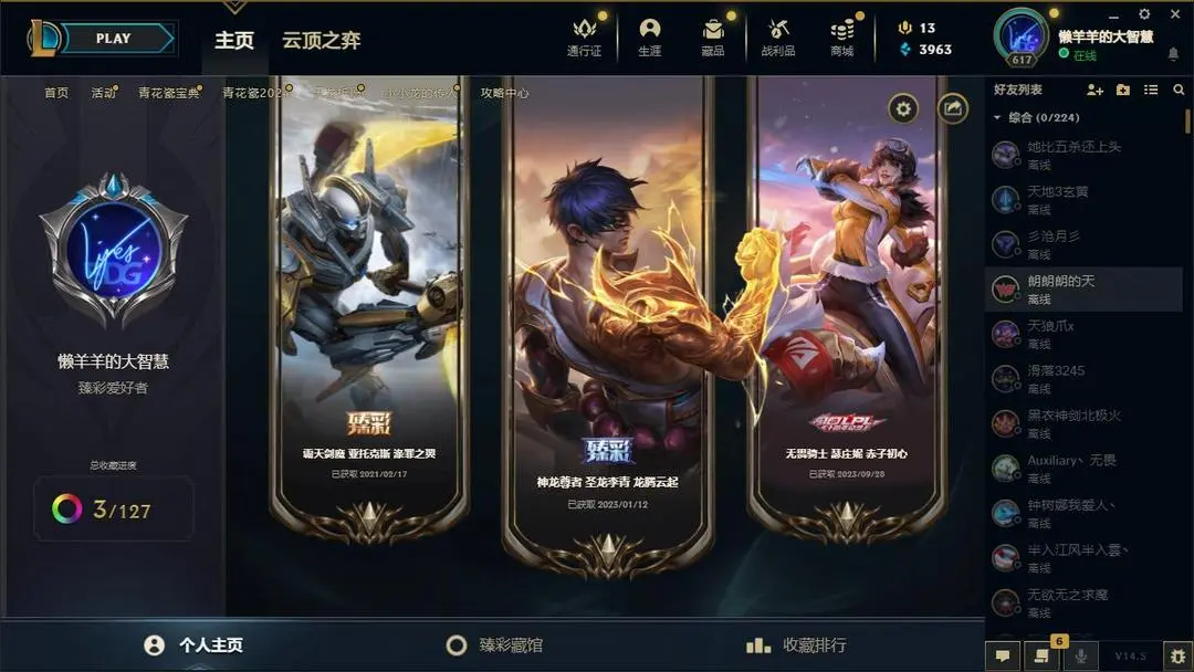 | 角色: 懒羊羊的大智慧#76493 | 等级: 1270级 华贵铂金IV |