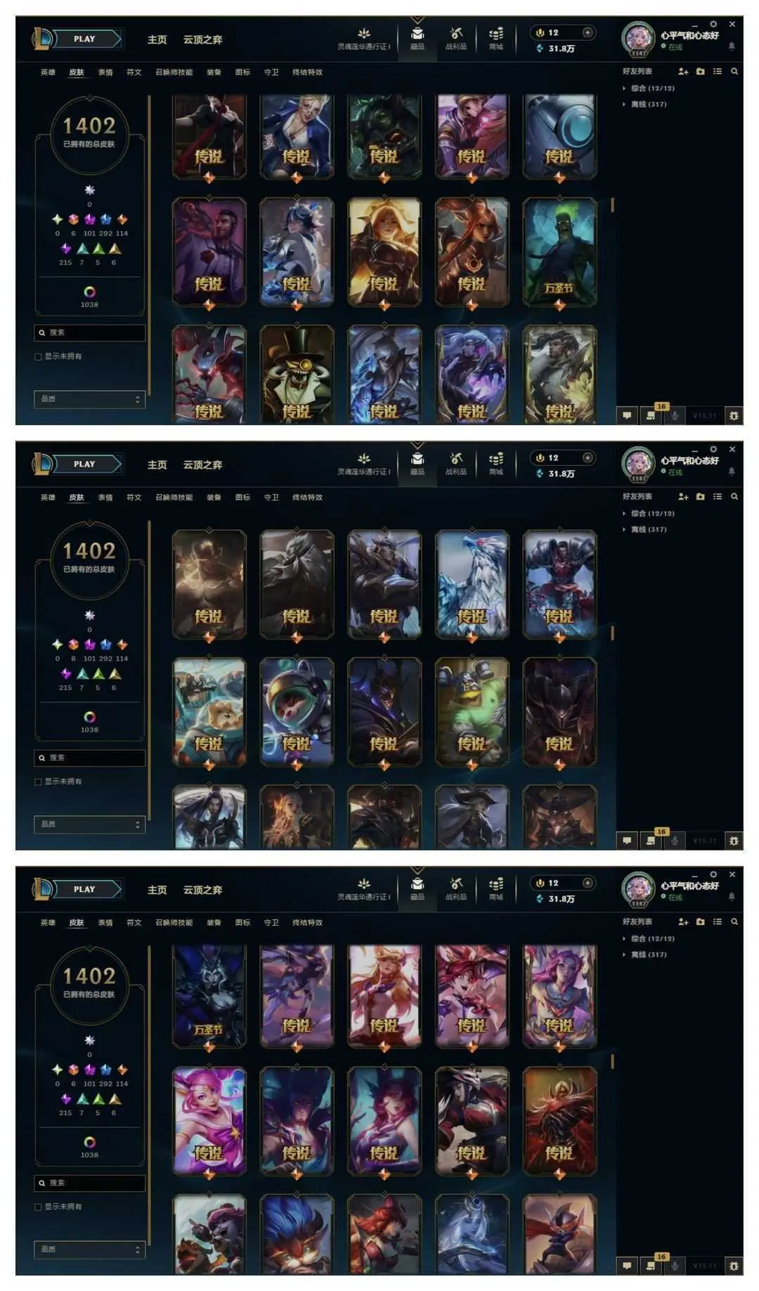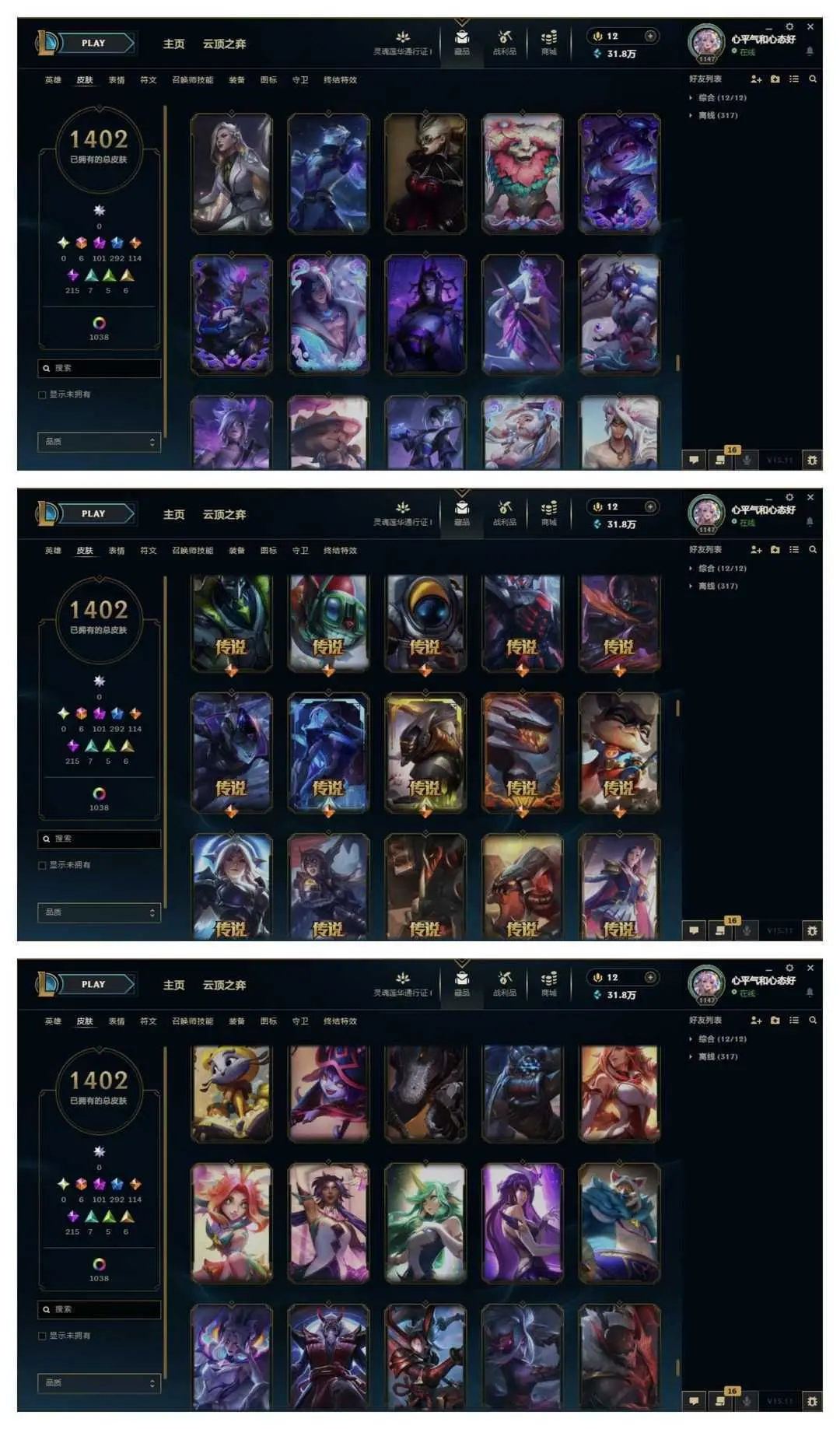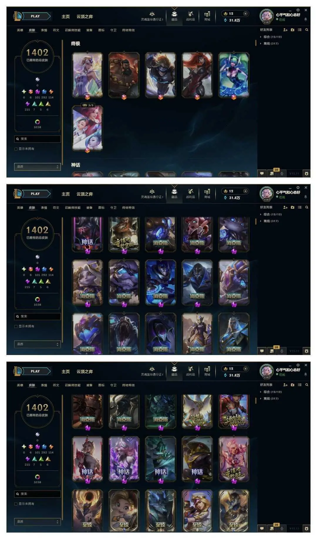 1500原皮♥️全至臻40臻彩云顶神话艾希♥️女帝魔域梦魇心之钢❤️至高天灵魂莲华玉剑神龙尊者青花瓷