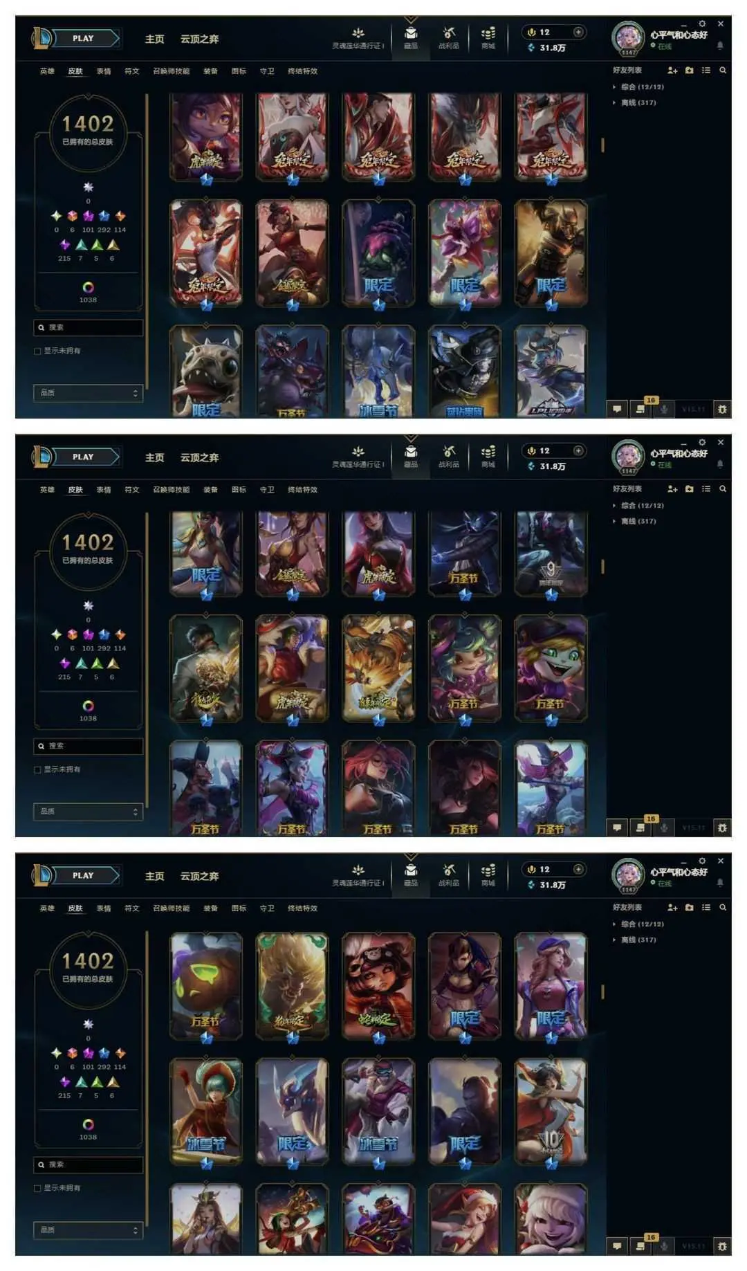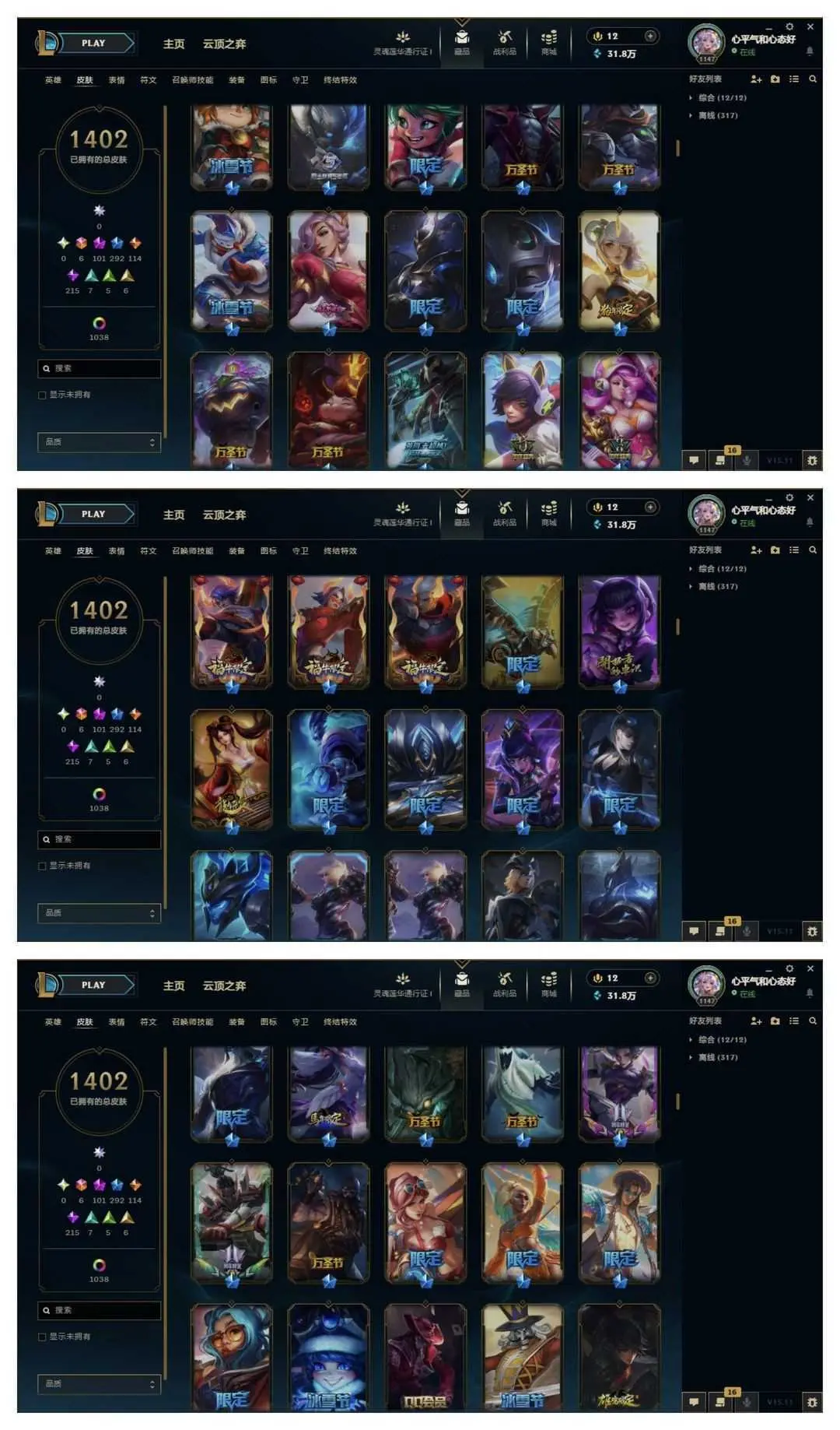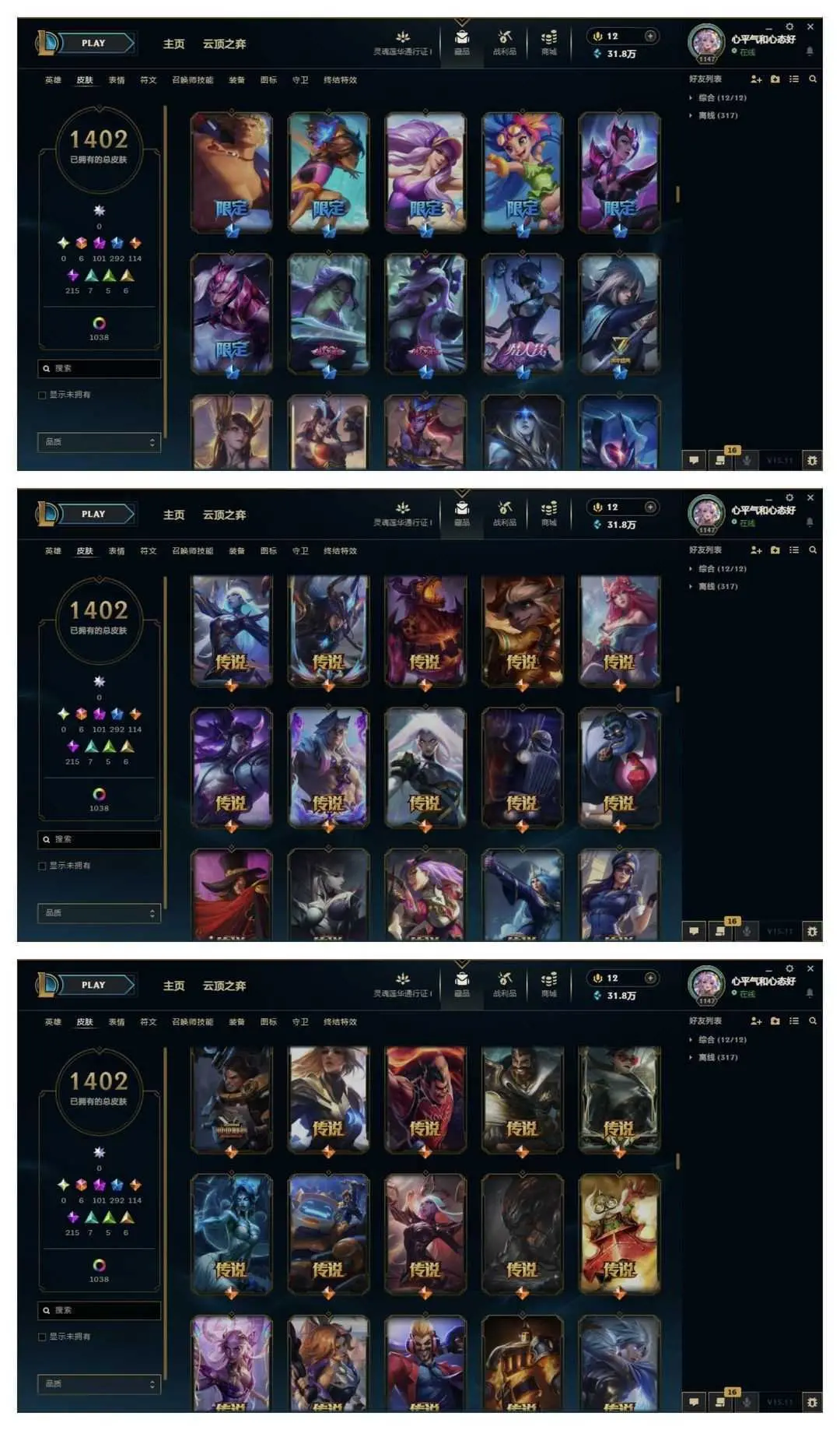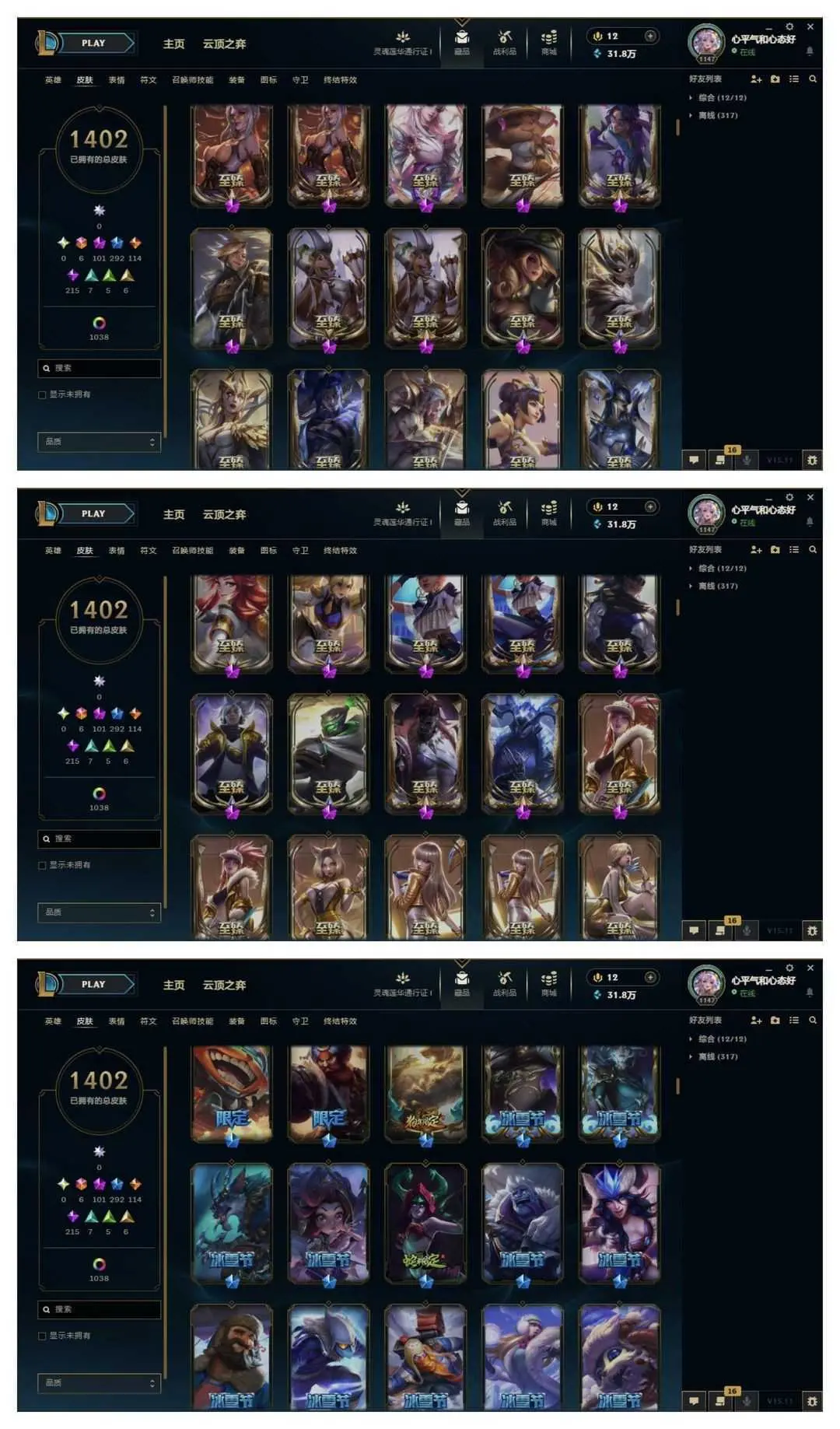 1500原皮♥️全至臻40臻彩云顶神话艾希♥️女帝魔域梦魇心之钢❤️至高天灵魂莲华玉剑神龙尊者青花瓷