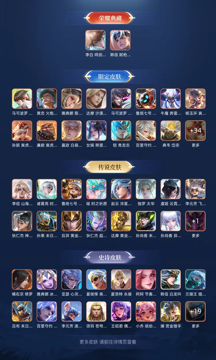 本游戏账号: V9用户,基础段位:最强王者,英雄多,皮肤多。典藏皮肤2个,感受典藏皮肤带来的优质体验快感,FMVP皮肤4个,尽情享受FMVP皮肤带来的主角光环, 私人所属英雄皮肤有:李白 鸣剑·曳影||韩信 弑枪猎影诸葛亮 时雨天司||孙尚香 乘龙·问璇玑||孙尚香 异界灵契||孙尚香 末日机甲||鲁班七号 寅虎·瑞焰||孙策 乘龙·淬吴钩||孙策 末日机甲||亚连 落雪白狼||吕布 曦玄引||宫本武藏 地狱之眼||狄仁杰 夜礼服假面||狄仁杰 神器·狴犴令||狄仁杰 超时空战士||达摩 黄金狮子座||夏洛特 浮生妄||王昭君 永恒水手月亮||孙悟空 齐天大圣||后羿 黄金射手座||李元芳 飞鸢探春||虞姬 启明星使||虞姬 云霓雀翎||裴擒虎 寅虎·赤拳||赵云 乘龙·铭钟鼎||赵云 淬星耀世||瑶 时之祈愿||李信 山海·炽霜斩||伽罗 太华,等等