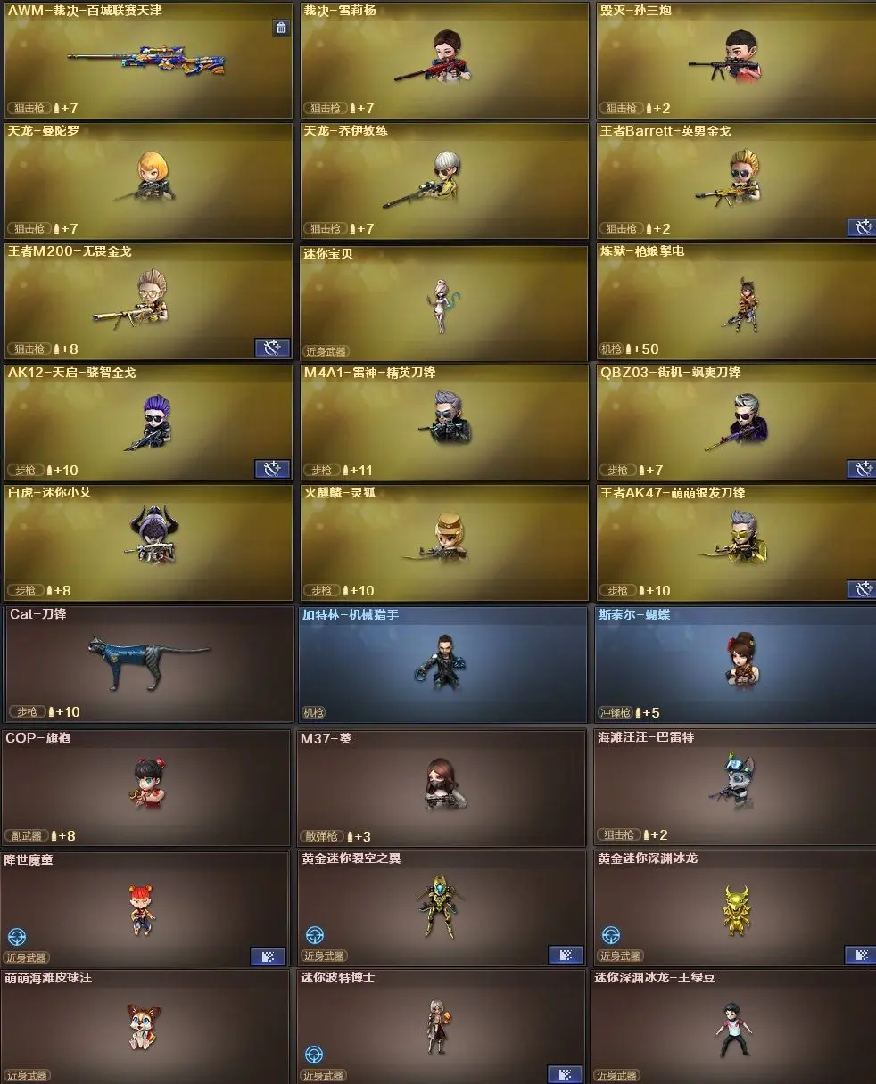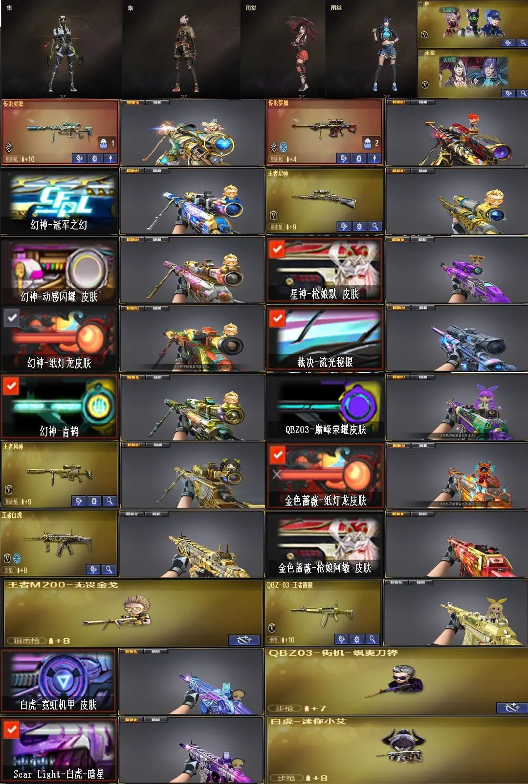 【装备道具】:【超多稀有小人枪】/【传说灵眸/传说梦魇】【3把幻神+5皮肤/青鹤/2冠军之幻/纸灯笼/动感闪耀/】【金色蔷薇+巅峰荣耀/纸灯笼/枪娘阿敏】【星神+枪娘星神音效卡】【幻影】/玄武/白虎/王者白虎/王者蔷薇/白虎蓝兔/王者星神/王者风神/6烈龙/9幻灵套/王者M200无畏金戈/加特林-机械猎手/斯太尔蝴蝶/CAT/CAT刀锋/金色小号/牛牛AK/王者葵惊若翩鸿/王者影豹/王者炫/隼/王者潘多拉/雨棠/灵狐者职业经理/星神音效卡/白虎音效卡/火麒麟音效卡/炼狱音效卡/黑骑士音效卡/雷神音效卡/极光音效卡/金色蔷薇音效卡/烈火熔核皮肤/金色蔷薇纸灯笼皮肤/龙啸纸灯笼/幻神纸灯笼皮肤/雷神赤焰皮肤/雷神脉冲皮肤/雷神巅峰荣耀皮肤/屠龙星火燎原皮肤/火麒麟大唐荣光皮肤/星神枪娘皮肤/白虎机甲皮肤/冠军之武/火麒麟盘古皮肤/黑鲨电流皮肤/金色蔷薇巅峰荣耀皮肤/冠军之幻/雷神LGD皮肤/白虎暗星皮肤/火麒麟横秒之巅皮肤/屠龙会员皮肤/无影霓裳皮肤/炼狱星空皮肤/雷神虎将皮肤/黑武士361皮肤/黑骑士AG皮肤/幻神闪耀皮肤/火麒麟华夏之心皮肤/火麒麟轻羽皮肤/金色蔷薇枪娘皮肤/冠军之魂
