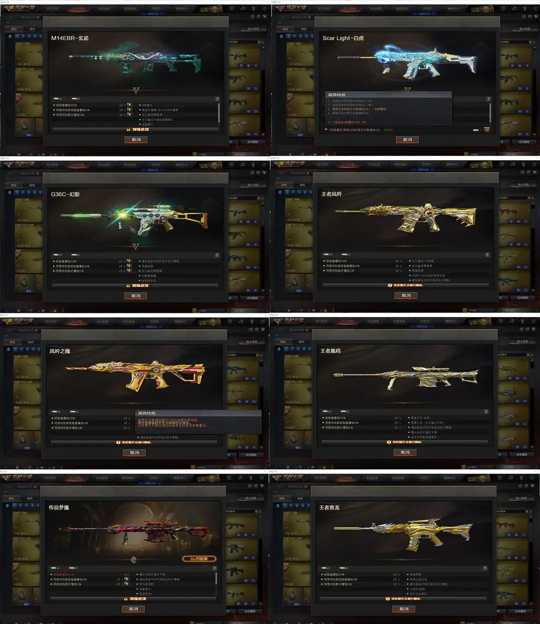 G36C幻影传说灵眸隼❤6色幻神冠军青鹤纸灯龙❤QBZ巅峰3色白虎玄武❤星神音效卡梦魇生化满配全皮肤