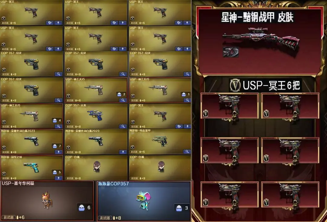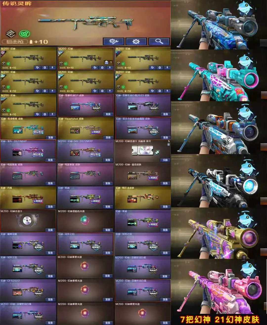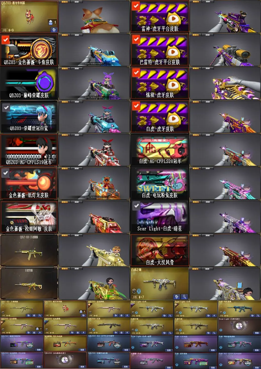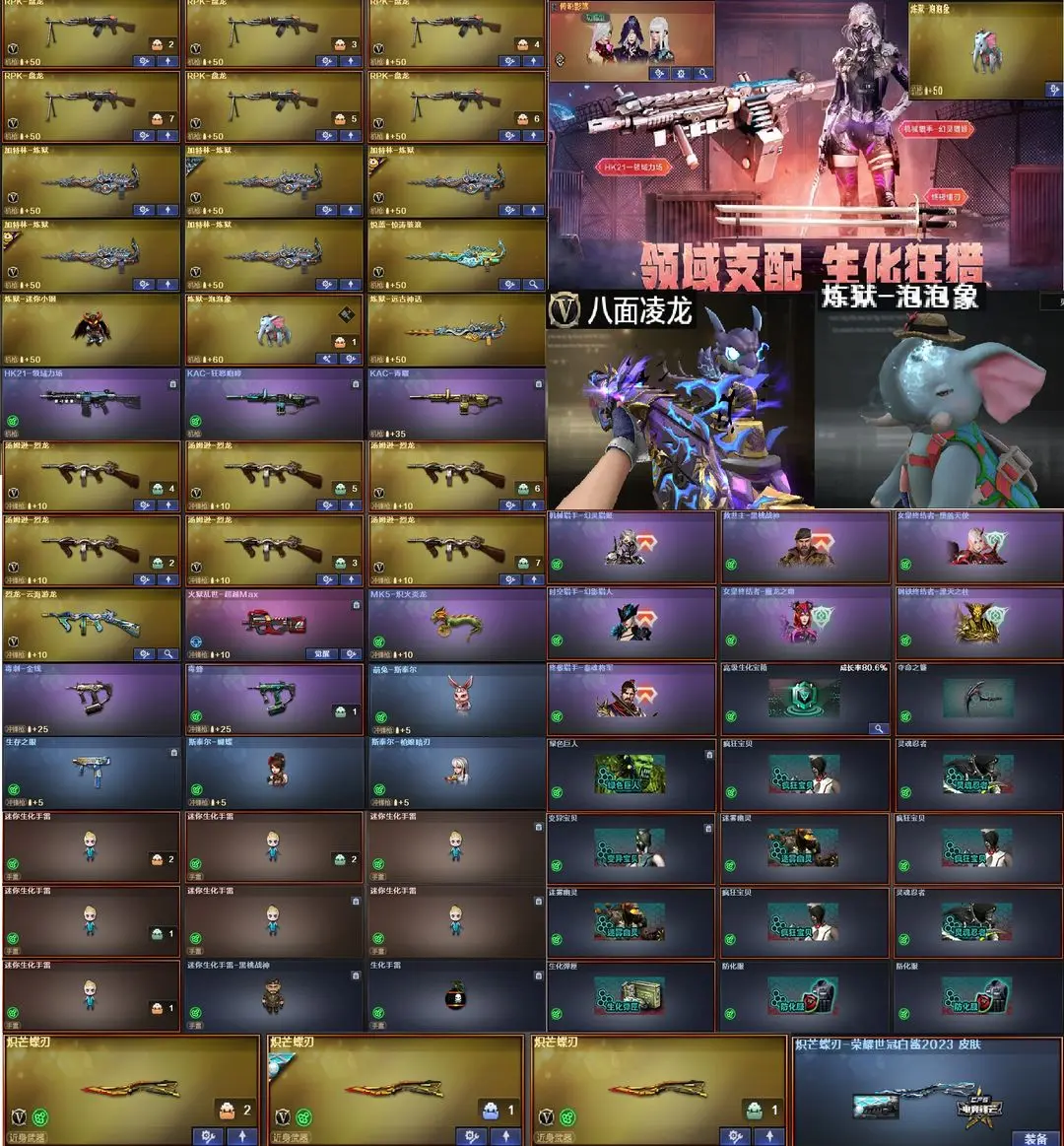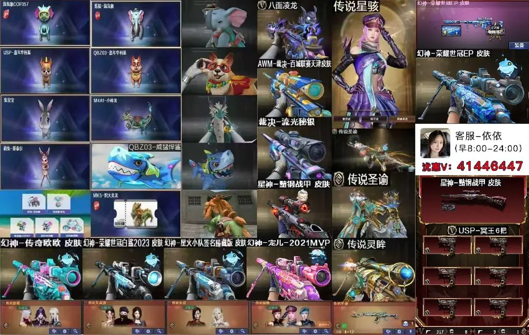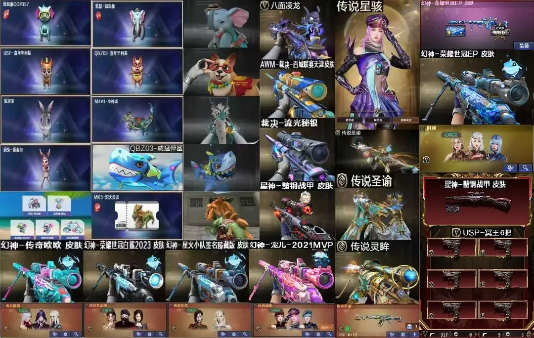 【装备道具】:传说星骇★传说圣谕★QBZ威猛悍鲨★★裁决音效卡★满级八面凌龙★传说影煞★炼狱泡泡象COP泡泡象★3把蝶刃★G36C-幻影/传传说辉光/传说夜影/传说灵眸★传说女帝/传说艾莉莎/传说梦魇★QBZ嘉年华柯基★USP-嘉年华柯基★兔宝宝★萌兔-斯泰尔★幻神电流骇客 /幻神纸灯龙/幻神黄忠/幻神世冠白鲨/幻神冠军之幻/幻神巅峰荣耀/幻神青鹤/幻神丹凤/幻神CFS2022/毁灭SV★98K-星神★王者星神★王者蔷薇-觉醒版★王者森决★王者凰鸣M4A1-神工天巧★白虎-电玩★Scar-白虎★白虎之魄★王者白虎★王者风神★王者芳薇★凤吟之魄★王者霜心凤吟★电竞装甲套装/幻灵套装★传说女帝/传说艾莉莎/樱/影豹/关小雨/沙漠玫瑰/枪娘樱/晴雅/兰-巾帼英雄/魅影/月兔特工/隼/岚兮儿/瞳/荒漠琉璃/审判者/鹰/葵/零/机械姬/雨棠/司雨/王者凌霄/王者沙漠玫瑰/王者炫/王者炽天使/王者潘多拉/王者影豹/王者涂鸦/王者-救世主/王者零-传说之路/王者复仇/王者-葵-貂蝉/王者玲珑-小乔/王者-迷迭香/王者葵-惊若翩鸿/王者春/女主播/新海豹突击队/幽★斯泰尔-枪娘暗刃★