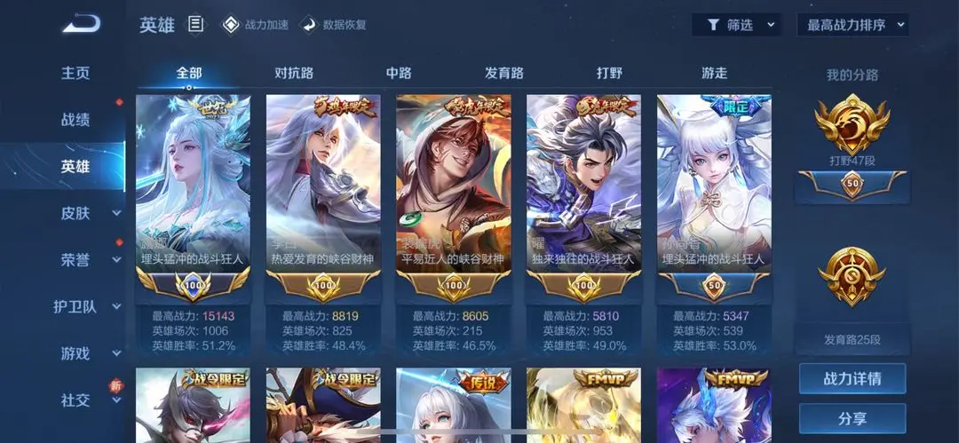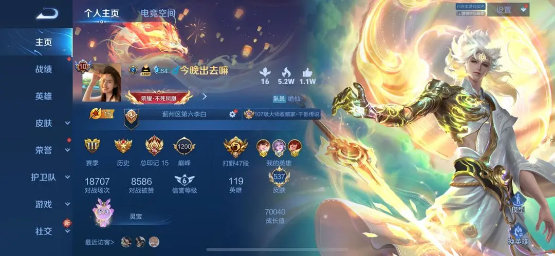 16典藏⚡瑶典藏⚡小国露娜⚡万战李白~老虎~耀⚡满蛇限⚡李白无双⚡瑶全皮⚡打野路47段⚡4打野金牌