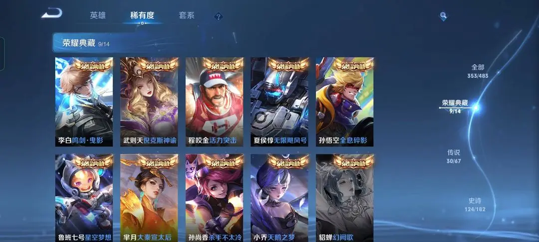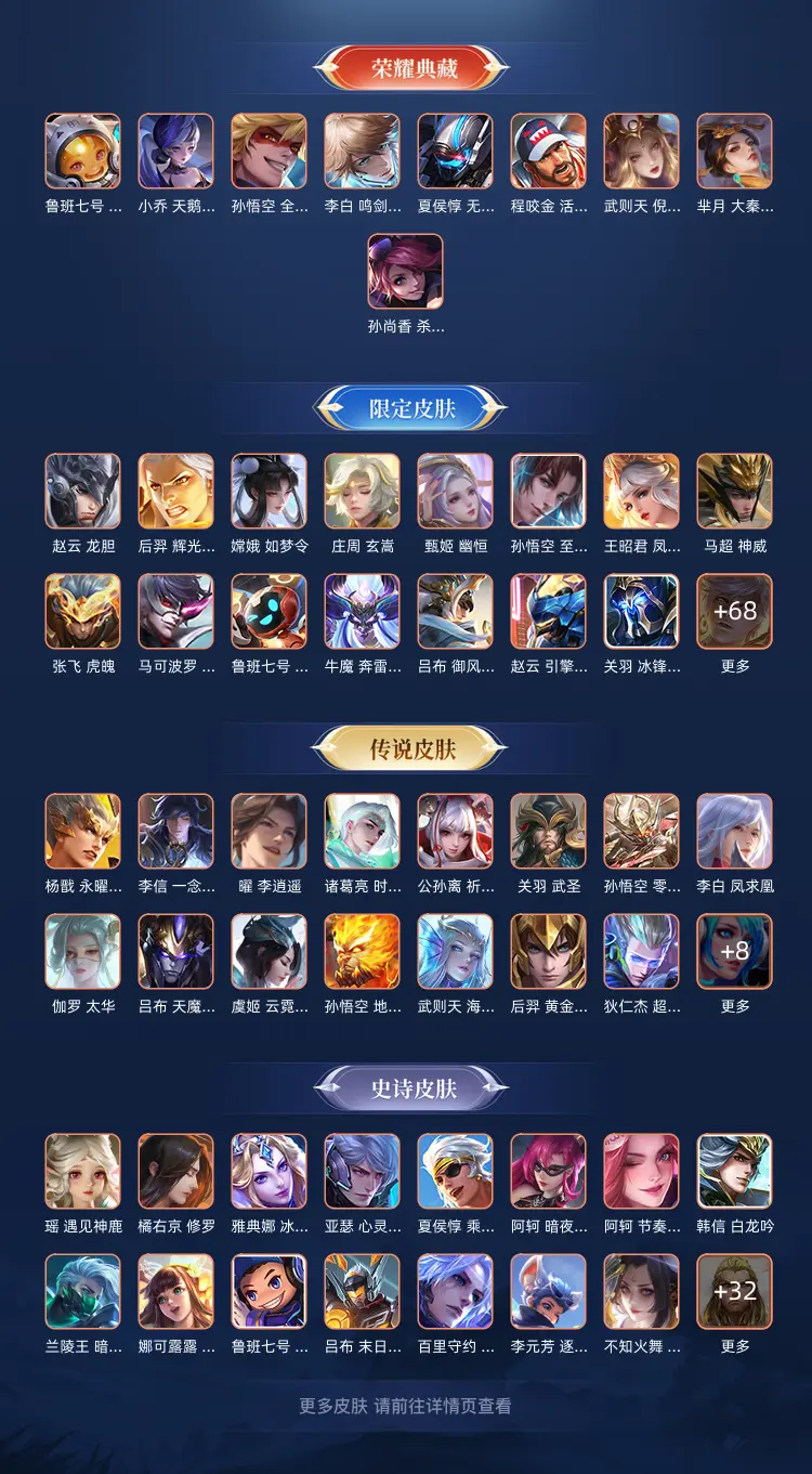 本游戏账号: V10用户,基础段位:至尊星耀IV,英雄多,皮肤多。典藏皮肤9个,感受典藏皮肤带来的优质体验快感,FMVP皮肤4个,尽情享受FMVP皮肤带来的主角光环, 私人所属英雄皮肤有:孙尚香 杀手不太冷||鲁班七号 星空梦想||芈月 大秦宣太后||夏侯惇 无限飓风号||李白 鸣剑·曳影||武则天 倪克斯神谕||程咬金 活力突击||孙悟空 全息碎影||小乔 天鹅之梦,等等