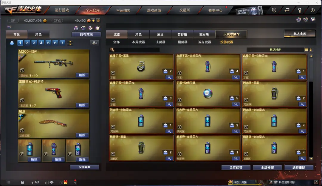 本游戏账号:英雄武器38个; 王者武器3个。 装备不多,但是主武器、副武器、近身武器够用 拥有完美游戏体验。重要的是,特殊装备有:荣耀世冠-雷神、AK47-火麒麟、荣耀世冠-柯尔特、M200-幻神、荣耀世冠-龙啸、烟雾弹-竞技荣光、闪光弹-竞技荣光、王者之影、王者之势-觉醒版、王者之怒-觉醒版、职业选手、灵狐者-职业经理、M4A1-黑骑士音效卡、M200-幻神音效卡、等,随意畅选。