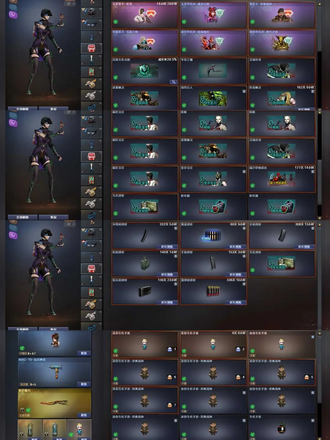 炽芒蝶刃满级八面凌龙生化四防传说影煞沙漠玫瑰6盘6烈炼狱蝴蝶双毒蜂暗裔芳薇白虎全猎手皮满弹夹