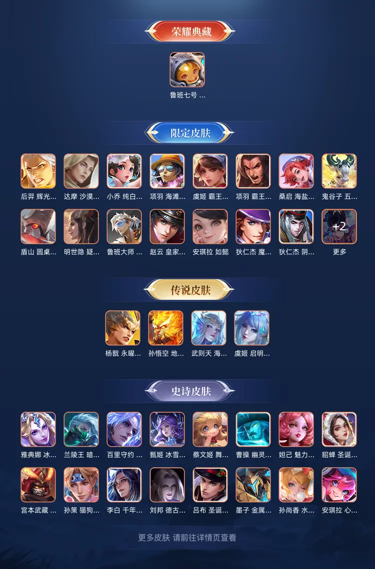 本游戏账号: V2用户,基础段位:永恒钻石IV,英雄多,皮肤多。典藏皮肤1个,感受典藏皮肤带来的优质体验快感, 私人所属英雄皮肤有:鲁班七号 星空梦想武则天 海洋之心||孙悟空 地狱火||虞姬 启明星使||杨戬 永曜之星孙膑 妖精王||狄仁杰 阴阳师||狄仁杰 魔术师||达摩 沙漠行僧||项羽 霸王别姬||项羽 海滩派对||桑启 海盐诗旅||貂蝉 逐梦之音||安琪拉 如懿||后羿 辉光之辰||李元芳 妄想特派||虞姬 霸王别姬||鬼谷子 五谷丰年||明世隐 疑决卦||小乔 纯白花嫁||赵云 皇家上将||米莱狄 御霄||盾山 圆桌骑士,等等