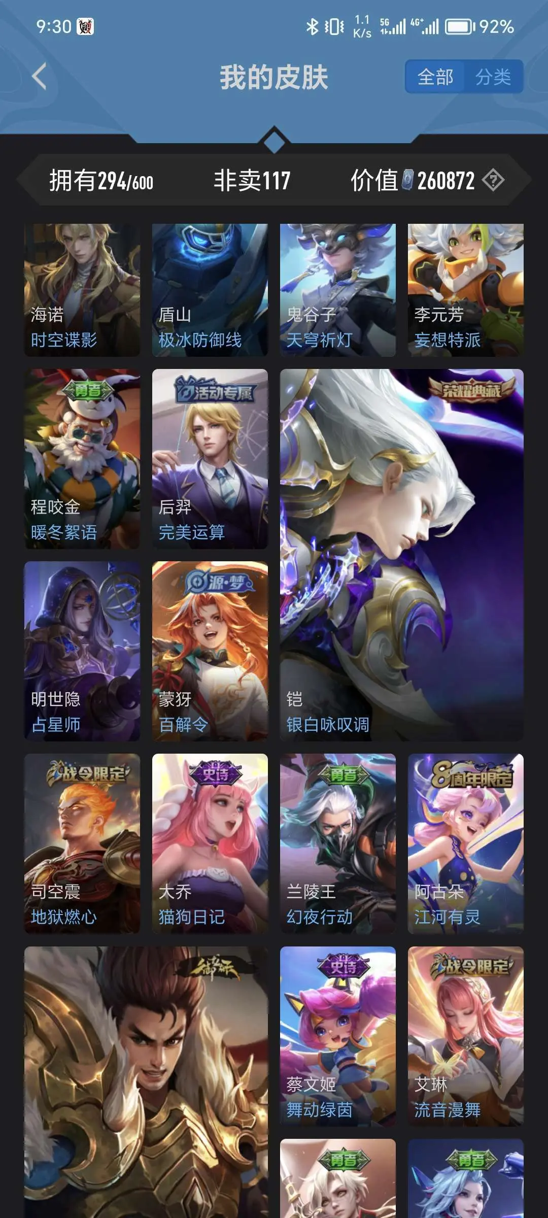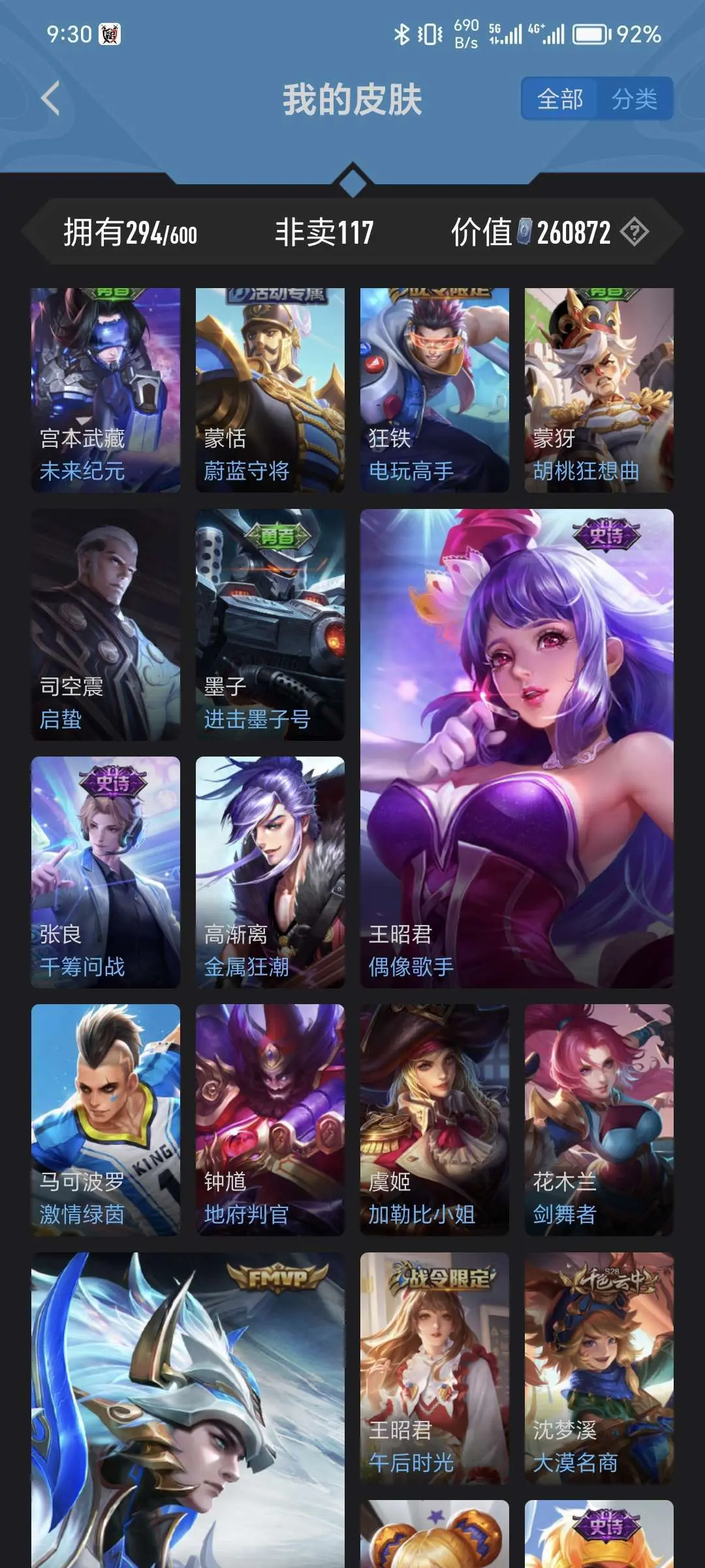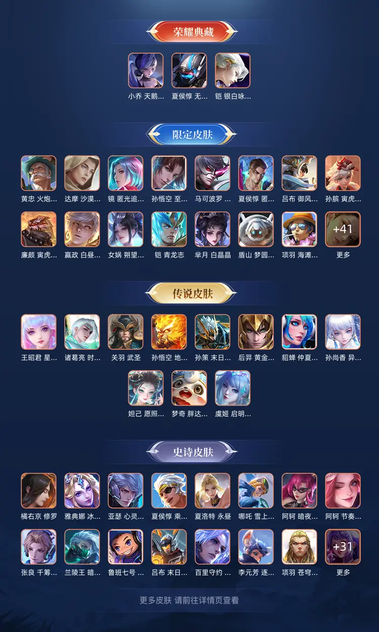 本游戏账号: ,英雄多,皮肤多。典藏皮肤3个,感受典藏皮肤带来的优质体验快感,FMVP皮肤1个,尽情享受FMVP皮肤带来的主角光环, 私人所属英雄皮肤有:夏侯惇 无限飓风号||小乔 天鹅之梦||铠 银白咏叹调梦奇 胖达荣荣||孙尚香 异界灵契||关羽 武圣||诸葛亮 时雨天司||桑启 鸣野蒿||王昭君 星穹之声||后羿 黄金射手座||虞姬 启明星使||娜可露露 前尘镜||貂蝉 仲夏夜之梦||孙策 末日机甲,等等
