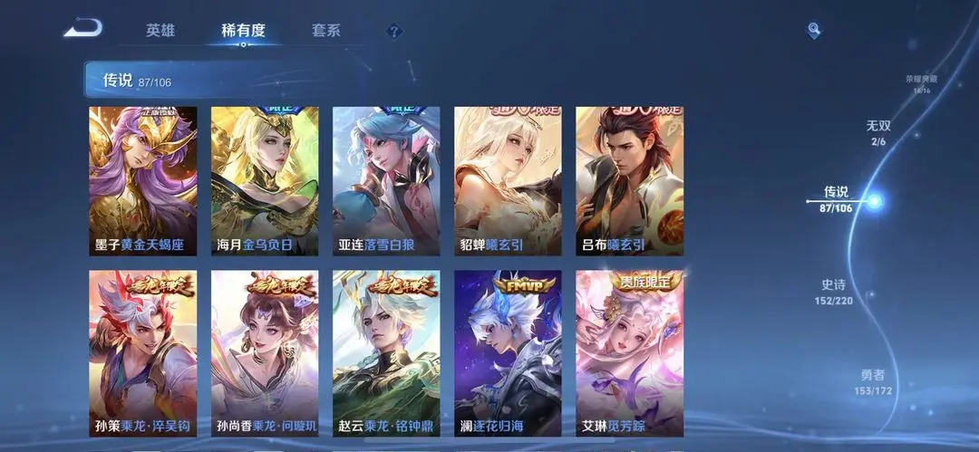 V10无双贵族不禁言❤️594皮肤❤小兵虞姬典藏❤龙年限定❤7传说天幕❤14荣耀水晶8星元