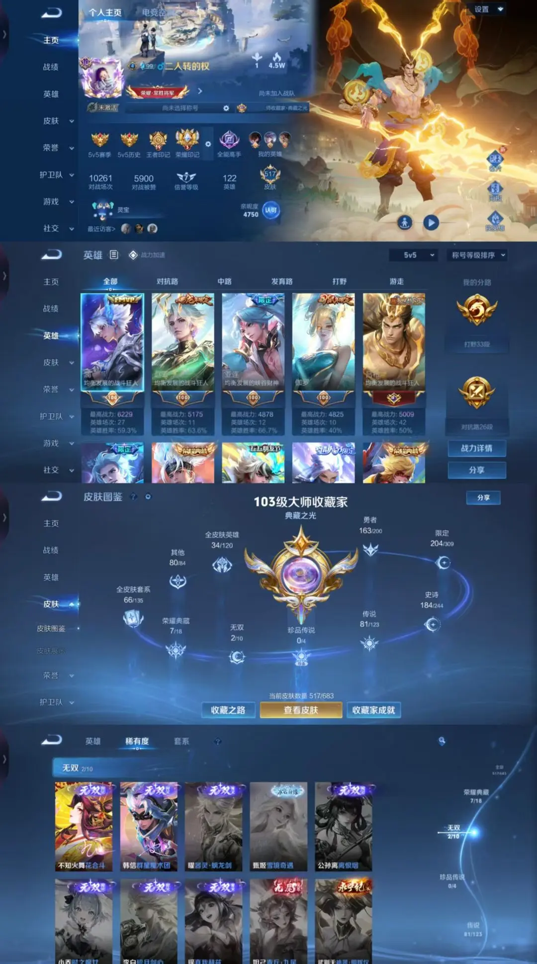 V10!517皮肤7典藏2无双81传说!