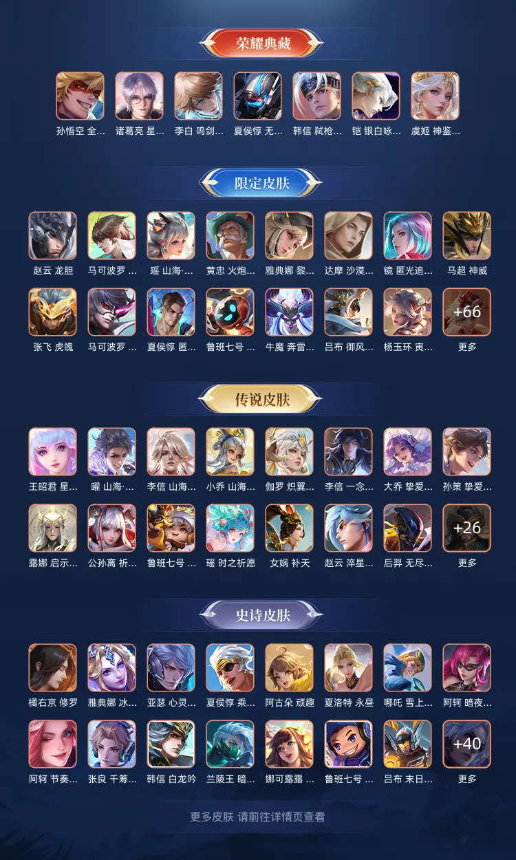 【7 典藏皮肤】鸣剑·曳影 李白,全息碎影 孙悟空,银白咏叹调 铠,神鉴启示录 虞姬,弑枪猎影 韩信,无限飓风号 夏侯惇,星域神启 诸葛亮,
