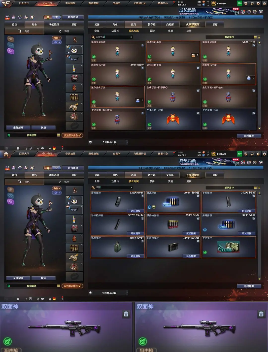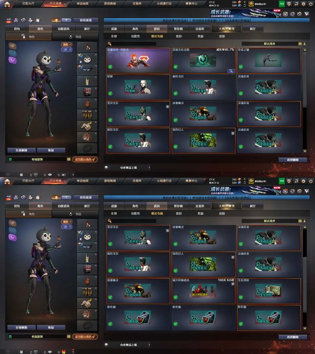 炽芒蝶刃生化四防传说影煞晴雅背包变更6盘6烈6副蝴蝶毒蜂清道夫双面神x2星火燎原满弹夹雷暴天巧套
