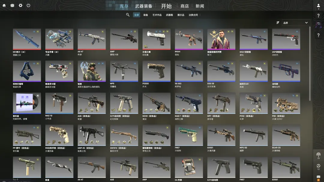 5E授信⭐完美B+⭐澄澈之水M9⭐专业手套大腕⭐传承AK⭐镀铬大狙⭐印花集手枪套⭐液化A1⭐