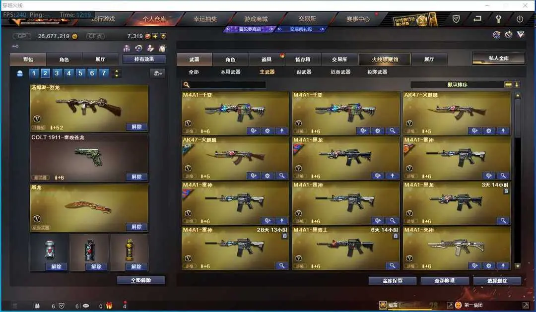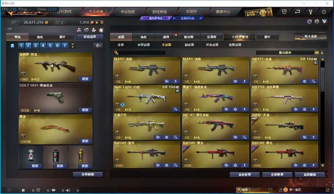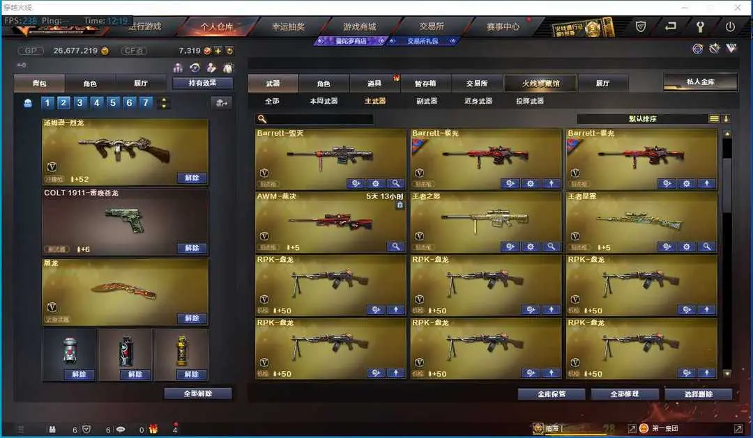 本游戏账号:英雄武器65个; 王者武器13个。 装备不多,但是主武器、副武器、近身武器够用 拥有完美游戏体验。重要的是,特殊装备有:AK47-火麒麟、麒麟刺、HK417-朱雀、加特林-炼狱、王者星霆、王者之怒-觉醒版、王者之武、炫金骑士、王者之翼、炫金武士、炫金火麒麟、炫金天龙、王者之幻-觉醒版、炫金雷神、魅影、堕天使、生化弹匣、等,随意畅选。