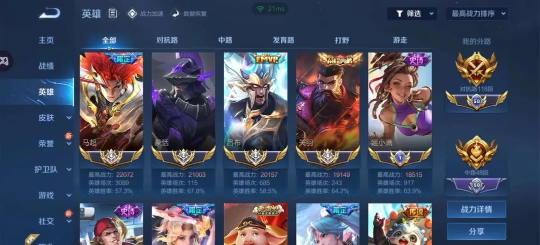 广州TTG前职业选手❤️120段对抗路国服50强对抗历史7大国服两万战力马超吕布蒙恬可排位不能组队