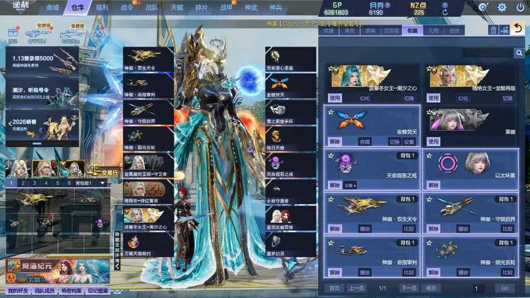 看描述解安全码✅波塞冬潮汐之心涅槃女王✅神御天耀双满配✅莱娜满配专属天命戒指✅蓝羽双姝✅冰雪双伴生