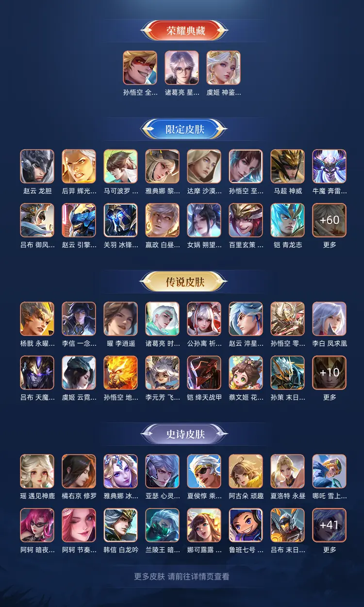 本游戏账号: ,基础段位:至尊星耀V,英雄多,皮肤多。典藏皮肤3个,感受典藏皮肤带来的优质体验快感,FMVP皮肤5个,尽情享受FMVP皮肤带来的主角光环, 私人所属英雄皮肤有:花木兰 九霄神辉||瑶 拾光映像||虞姬 神鉴启示录亚连 落雪白狼||艾琳 觅芳踪||桑启 鸣野蒿||云缨 鹤归松栖||夏洛特 浮生妄||李白 诗剑行||诸葛亮 鹤羽星尊||马超 琥珀纪元||云中君 群星魔术团||上官婉儿 神器·万象笔||达摩 黄金狮子座||铠 冥王哈迪斯||李信 一念神魔||公孙离 祈雪灵祝||公孙离 记忆之芯||虞姬 云霓雀翎||虞姬 启明星使||孙策 乘龙·淬吴钩||百里守约 碎云||梦奇 胖达荣荣||李元芳 飞鸢探春||不知火舞 绯月行||张飞 百相守梦||露娜 启示之音||露娜 霜月吟||王昭君 映山客||王昭君 永恒水手月亮||狄仁杰 夜礼服假面||狄仁杰 超时空战士||孙膑 小动物乐团||貂蝉 曦玄引||貂蝉 仲夏夜之梦||小乔 山海·琳琅生||墨子 黄金天蝎座||娜可露露