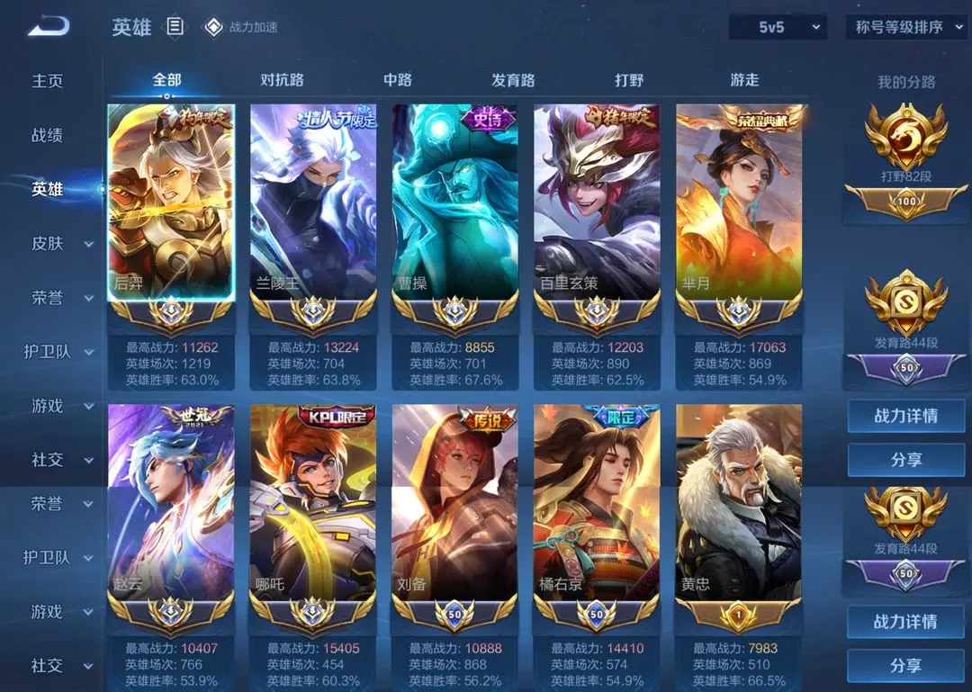 82段在榜省标打野⚡7大国标⚡大国服玄策✨大国服赵云✨大兰陵王⚡大国服哪吒曹操后羿芈月⚡历史巅峰万强