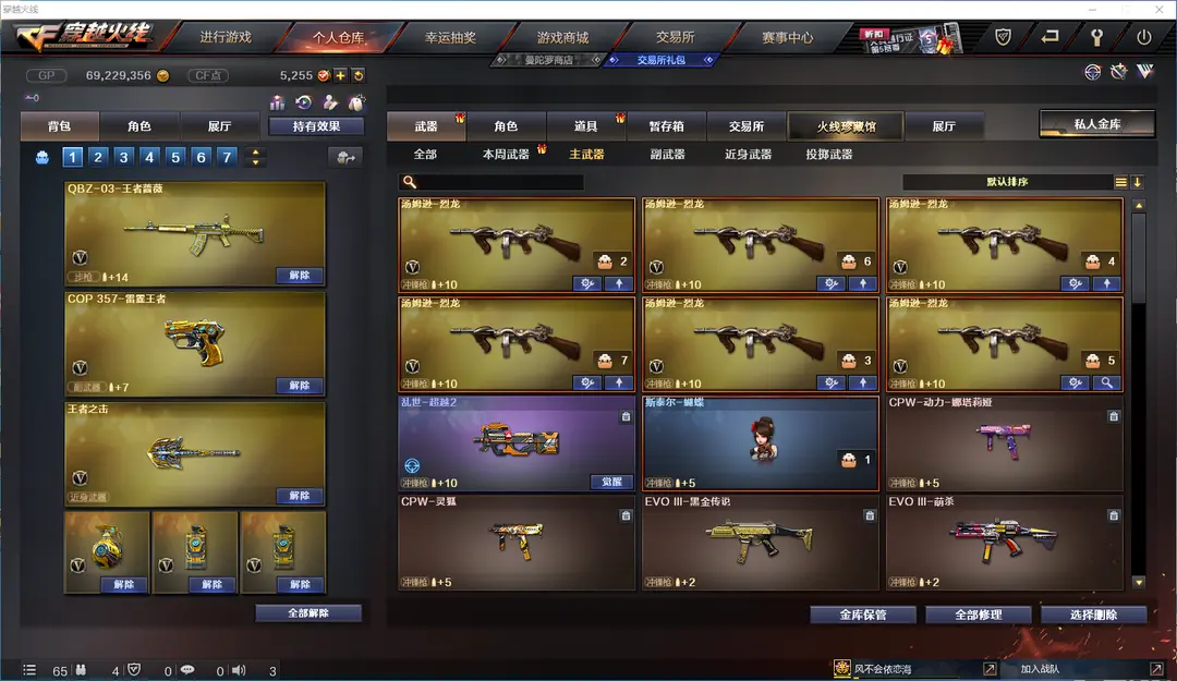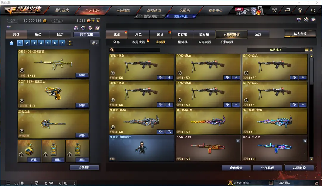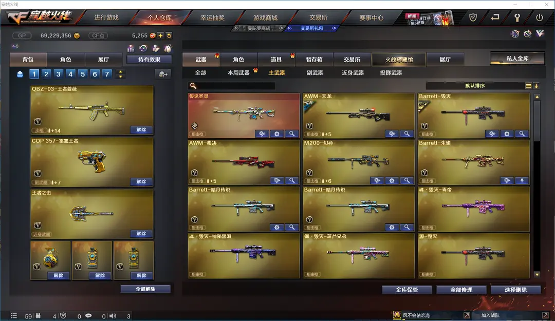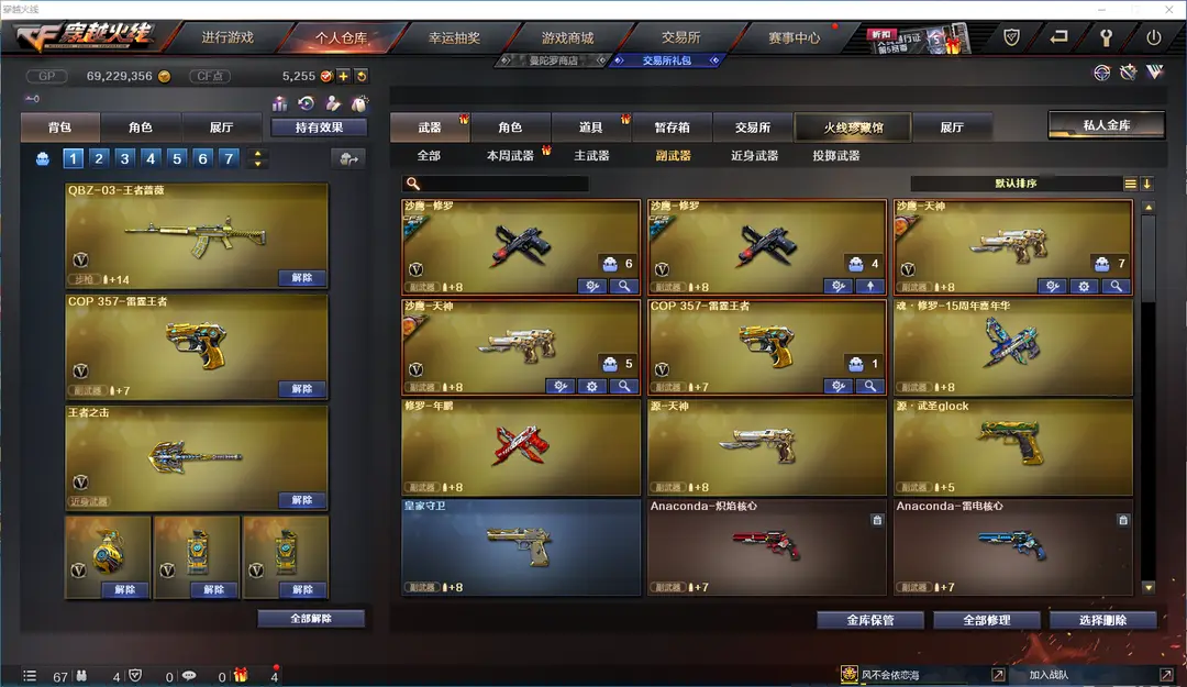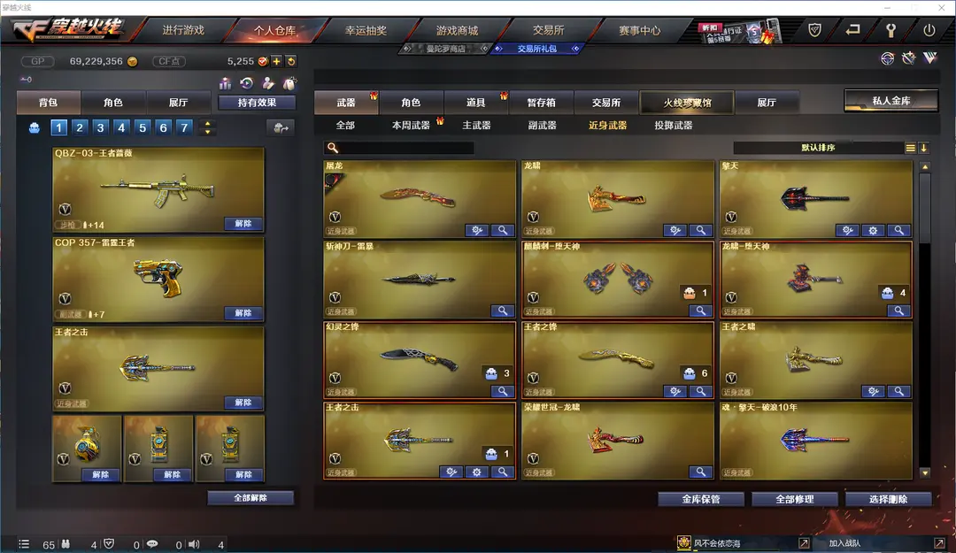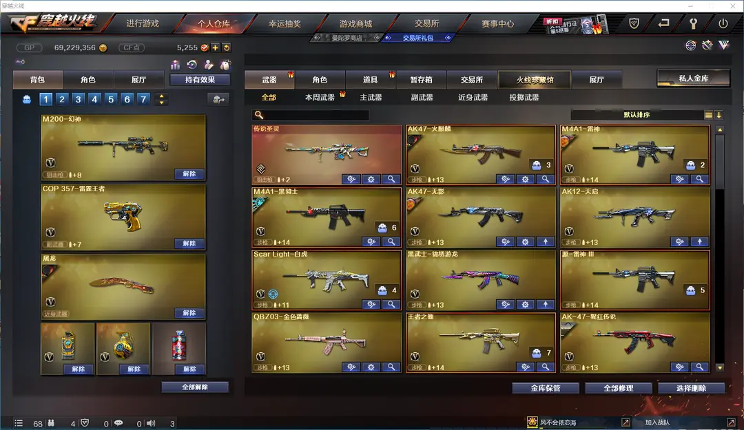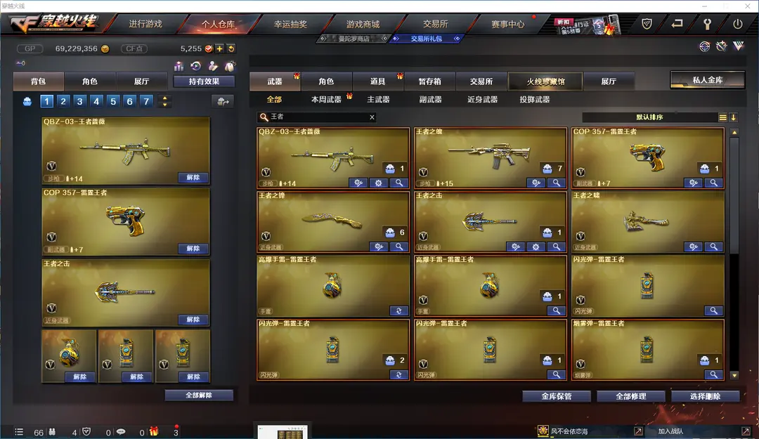 本游戏账号:英雄武器68个; 王者武器11个。 可以玩爆破号、生化号、双全装、稀有武器、等模式。装备不多,但是主武器、副武器、近身武器够用 拥有完美游戏体验。重要的是,特殊装备有:M200-幻神、AK47-火麒麟、荣耀世冠-龙啸、传说圣灵、闪光弹-竞技荣光、龙啸-堕天神、加特林-炼狱、黑骑士-海王、王者之魄-觉醒版、王者之锋-觉醒版、闪光弹-雷霆王者、高爆手雷-雷霆王者、王者-葵-貂蝉、堕天使、M4A1-黑骑士音效卡、王者之啸金色光效、王者之魄金色光效、生化弹匣、等,随意畅选。
