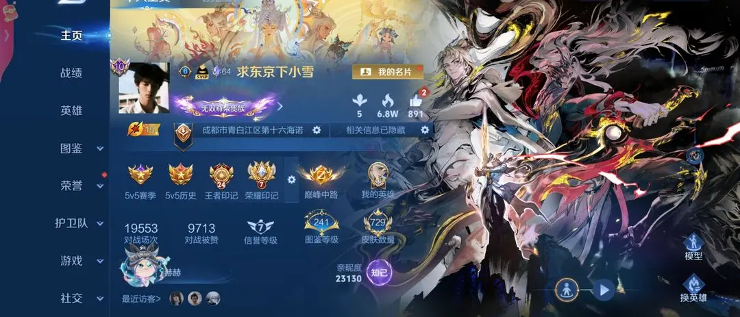 本游戏账号: V10用户,基础段位:至尊星耀IV,英雄多,皮肤多。典藏皮肤3个,感受典藏皮肤带来的优质体验快感,FMVP皮肤7个,尽情享受FMVP皮肤带来的主角光环, 私人所属英雄皮肤有:孙悟空 全息碎影||铠 银白咏叹调||李白 鸣剑·曳影马可波罗 妄想实况||马可波罗 深海之息||公孙离 祈雪灵祝||澜 愿照·九州拓||武则天 海洋之心||曜 山海·苍雷引||曜 李逍遥||裴擒虎 寅虎·赤拳||女娲 愿照·千秋盛||女娲 补天||孙尚香 异界灵契||孙尚香 末日机甲||孙悟空 零号·赤焰||孙悟空 地狱火||艾琳 觅芳踪||铠 绛天战甲||铠 冥王哈迪斯||司空震 愿照·山河定||嬴政 玄雷天君||李信 山海·炽霜斩||李信 一念神魔||干将莫邪 画中仙||李白 诗剑行||狄仁杰 超时空战士||不知火舞 绯月行||蔡文姬 愿照·福禄聚||后羿 黄金射手座||小乔 山海·琳琅生||夏洛特 浮生妄||百里守约 碎云||达摩 黄金狮子座||诸葛亮 鹤羽星尊||诸葛亮 时雨天司||宫