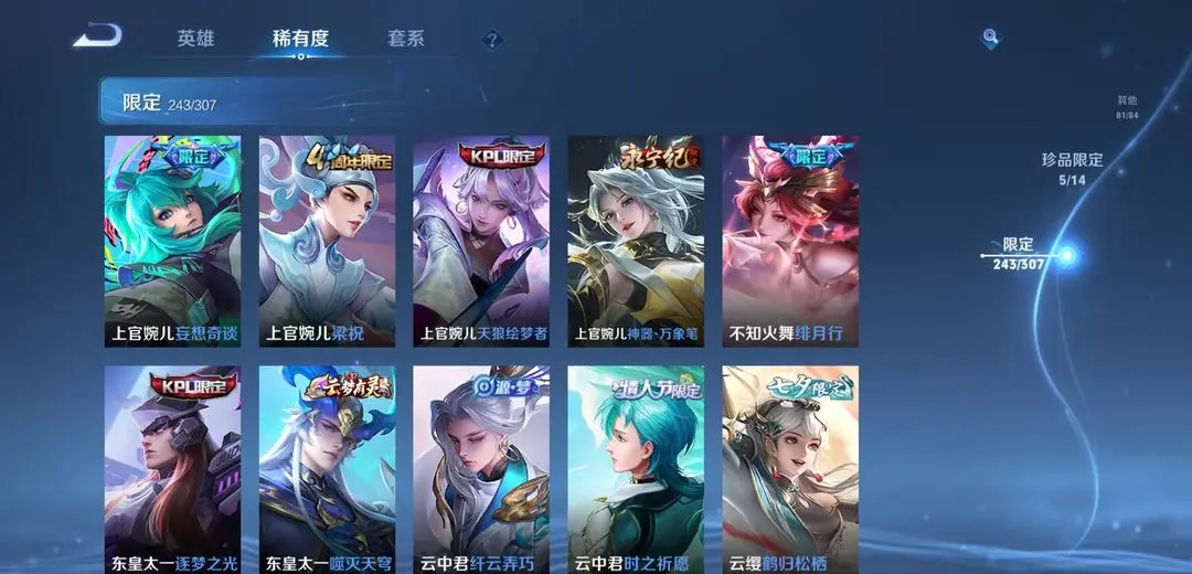 V10无双☆563皮肤❤青丘九尾❤神器明辉仪❤乞巧织春❤无限倾慕❤零号雷霆❤苍灵仙君❤玉鸾吟❤