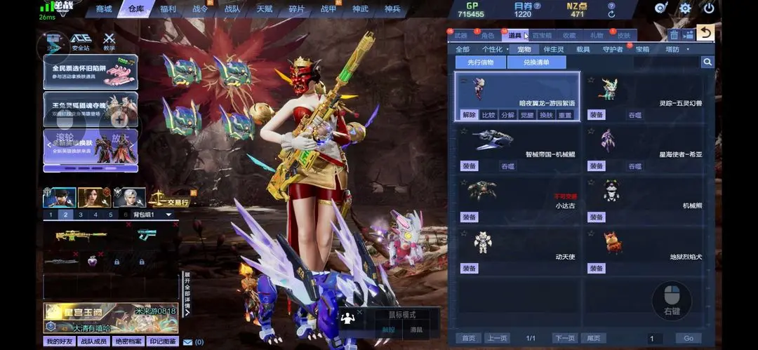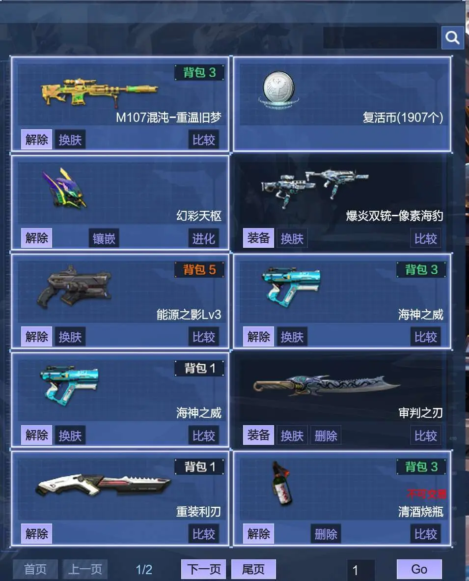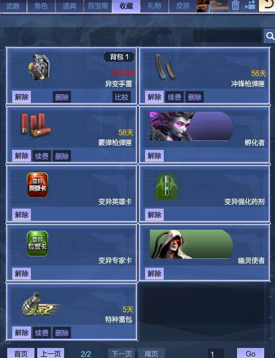 ✨/两把海神之威/✨审判之刃/重装利刃/✨变异三卡和三个弹夹(武装40发)✨/孵化者/幽灵使者/✨异变手雷/燃烧瓶✨(弹夹没及时说会补,年底会增加蝎王➕皮肤)