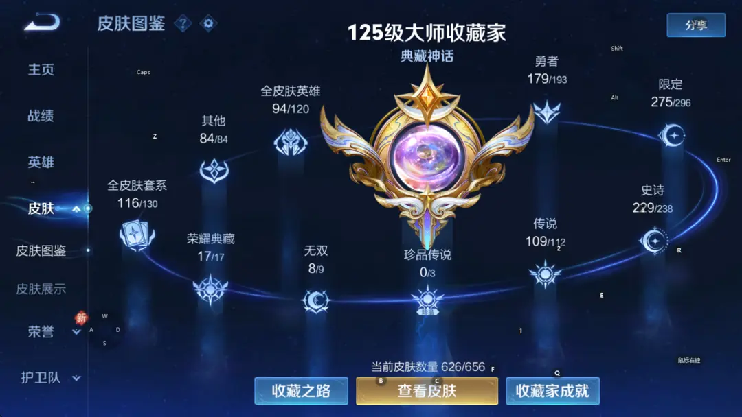 本游戏账号: V10用户,基础段位:最强王者,英雄多,皮肤多。典藏皮肤17个,感受典藏皮肤带来的优质体验快感,FMVP皮肤10个,尽情享受FMVP皮肤带来的主角光环, 私人所属英雄皮肤有:诸葛亮 星域神启||铠 银白咏叹调||孙尚香 杀手不太冷||鲁班七号 星空梦想||芈月 大秦宣太后||夏侯惇 无限飓风号||李白 鸣剑·曳影||武则天 倪克斯神谕||关羽 赤影疾锋||貂蝉 幻阙歌||程咬金 活力突击||韩信 弑枪猎影||花木兰 九霄神辉||孙悟空 全息碎影||虞姬 神鉴启示录||小乔 天鹅之梦||瑶 拾光映像,等等
