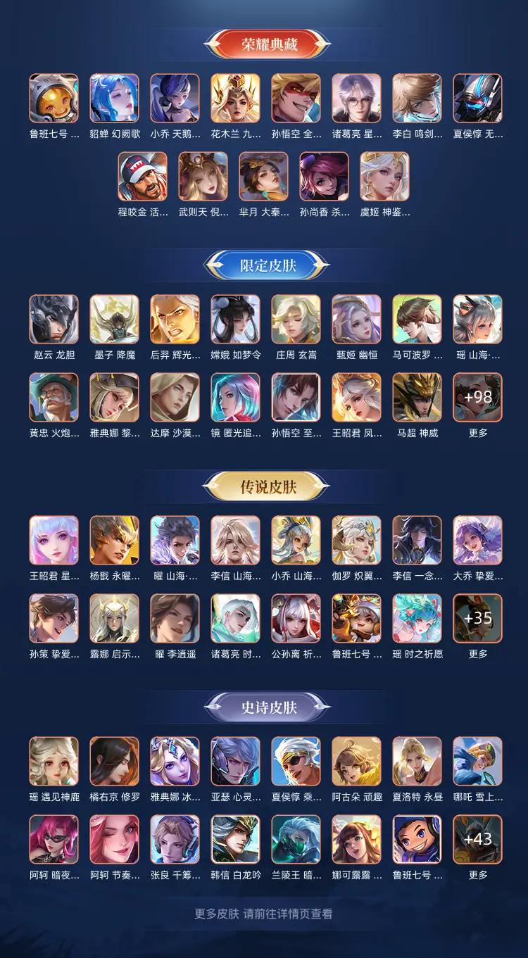 本游戏账号: V10荣耀贵族用户,基础段位:永恒钻石I,英雄多,皮肤多。典藏皮肤14个,感受典藏皮肤带来的优质体验快感,FMVP皮肤10个,尽情享受FMVP皮肤带来的主角光环, 私人所属英雄皮肤有:诸葛亮 星域神启||铠 银白咏叹调||孙尚香 杀手不太冷||鲁班七号 星空梦想||芈月 大秦宣太后||夏侯惇 无限飓风号||李白 鸣剑·曳影||武则天 倪克斯神谕||貂蝉 幻阙歌||程咬金 活力突击||花木兰 九霄神辉||虞姬 神鉴启示录||小乔 天鹅之梦||瑶 拾光映像,等等