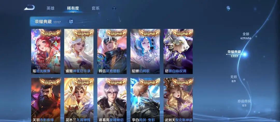 本游戏账号: V10无双贵族用户,基础段位:永恒钻石I,英雄多,皮肤多。典藏皮肤17个,感受典藏皮肤带来的优质体验快感,FMVP皮肤10个,尽情享受FMVP皮肤带来的主角光环, 私人所属英雄皮肤有:诸葛亮 星域神启||铠 银白咏叹调||孙尚香 杀手不太冷||鲁班七号 星空梦想||芈月 大秦宣太后||夏侯惇 无限飓风号||李白 鸣剑·曳影||武则天 倪克斯神谕||关羽 赤影疾锋||貂蝉 幻阙歌||程咬金 活力突击||韩信 弑枪猎影||花木兰 九霄神辉||孙悟空 全息碎影||虞姬 神鉴启示录||小乔 天鹅之梦||瑶 拾光映像,等等