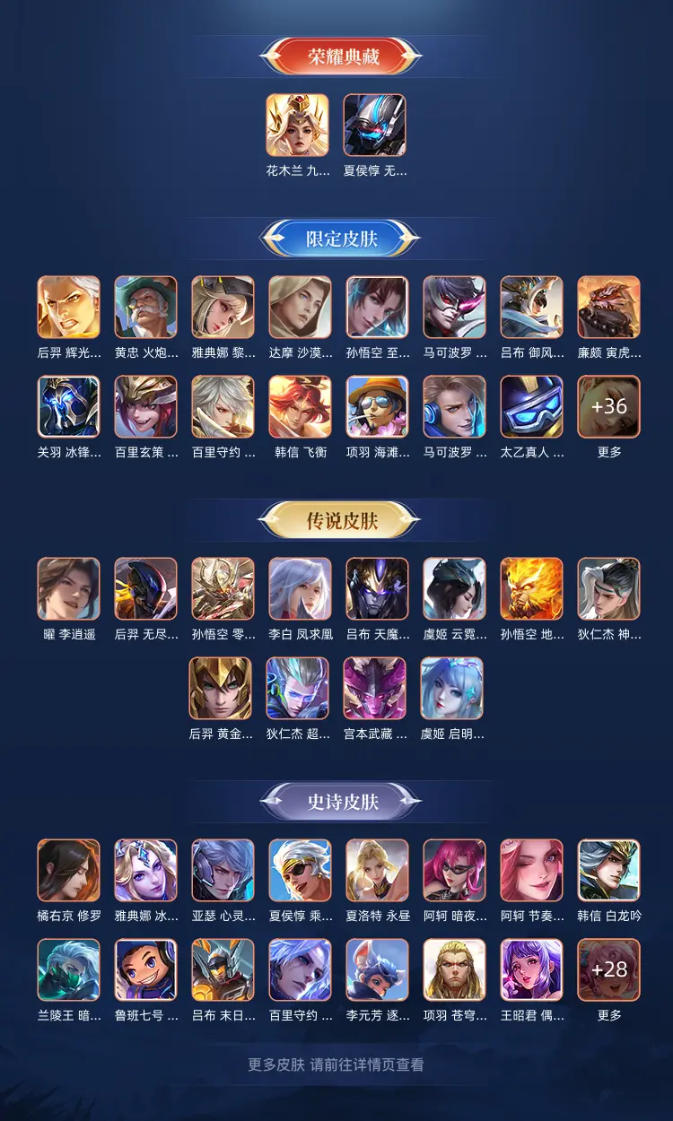 本游戏账号: V10用户,基础段位:至尊星耀II,英雄多,皮肤多。典藏皮肤2个,感受典藏皮肤带来的优质体验快感,FMVP皮肤2个,尽情享受FMVP皮肤带来的主角光环, 私人所属英雄皮肤有:夏侯惇 无限飓风号||花木兰 九霄神辉吕布 天魔缭乱||曜 李逍遥||宫本武藏 地狱之眼||李白 凤求凰||狄仁杰 神器·狴犴令||狄仁杰 超时空战士||艾琳 觅芳踪||孙悟空 零号·赤焰||孙悟空 地狱火||后羿 无尽星芒||后羿 黄金射手座||虞姬 云霓雀翎||虞姬 启明星使,等等