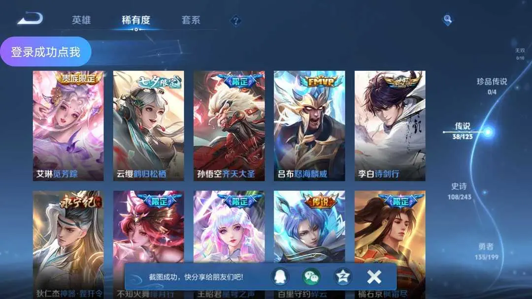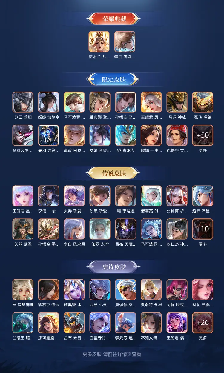 本游戏账号: V10用户,基础段位:永恒钻石III,英雄多,皮肤多。典藏皮肤2个,感受典藏皮肤带来的优质体验快感,FMVP皮肤7个,尽情享受FMVP皮肤带来的主角光环, 私人所属英雄皮肤有:花木兰 九霄神辉||李白 鸣剑·曳影曜 李逍遥||李白 诗剑行||李白 凤求凰||马可波罗 深海之息||孙悟空 齐天大圣||孙悟空 零号·赤焰||吕布 天魔缭乱||孙尚香 异界灵契||孙尚香 末日机甲||不知火舞 绯月行||宫本武藏 地狱之眼||诸葛亮 时雨天司||关羽 武圣||云缨 鹤归松栖||貂蝉 仲夏夜之梦||孙策 挚爱之约||李信 一念神魔||公孙离 祈雪灵祝||狄仁杰 神器·狴犴令||狄仁杰 超时空战士||兰陵王 默契交锋||达摩 黄金狮子座||百里守约 碎云||虞姬 启明星使||伽罗 太华||艾琳 觅芳踪||铠 绛天战甲||橘右京 枫霜尽||王昭君 星穹之声||赵云 淬星耀世||大乔 挚爱花嫁,等等