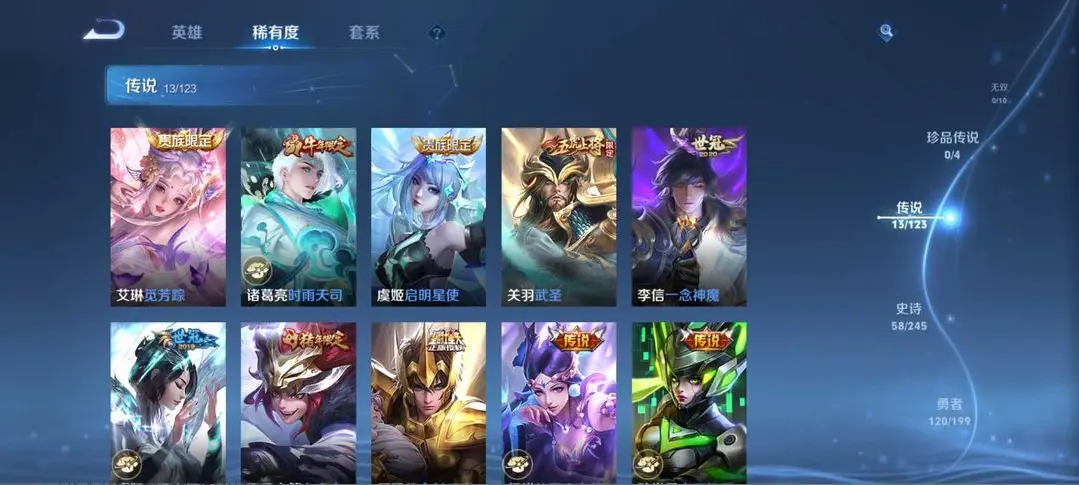 本游戏账号: V10用户,基础段位:最强王者,英雄多,皮肤多。典藏皮肤1个,感受典藏皮肤带来的优质体验快感, 私人所属英雄皮肤有:孙尚香 杀手不太冷诸葛亮 时雨天司||孙尚香 末日机甲||狄仁杰 超时空战士||武则天 海洋之心||关羽 武圣||貂蝉 仲夏夜之梦||艾琳 觅芳踪||孙悟空 地狱火||后羿 黄金射手座||虞姬 启明星使||虞姬 云霓雀翎||李信 一念神魔,等等