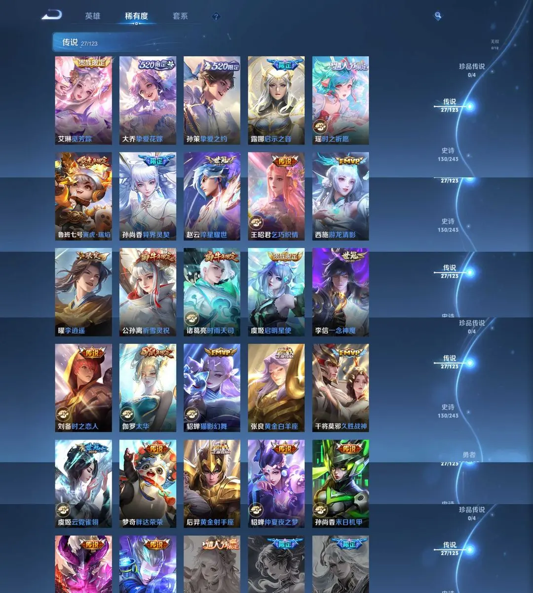 本游戏账号: V10用户,基础段位:至尊星耀II,英雄多,皮肤多。典藏皮肤3个,感受典藏皮肤带来的优质体验快感,FMVP皮肤3个,尽情享受FMVP皮肤带来的主角光环, 私人所属英雄皮肤有:夏侯惇 无限飓风号||武则天 倪克斯神谕||小乔 天鹅之梦诸葛亮 时雨天司||大乔 挚爱花嫁||梦奇 胖达荣荣||孙尚香 异界灵契||孙尚香 末日机甲||公孙离 祈雪灵祝||鲁班七号 寅虎·瑞焰||孙策 挚爱之约||曜 李逍遥||宫本武藏 地狱之眼||狄仁杰 超时空战士||貂蝉 仲夏夜之梦||露娜 启示之音||王昭君 乞巧织情||艾琳 觅芳踪||张良 黄金白羊座||后羿 黄金射手座||虞姬 启明星使||虞姬 云霓雀翎||赵云 淬星耀世||瑶 时之祈愿||李信 一念神魔||伽罗 太华,等等