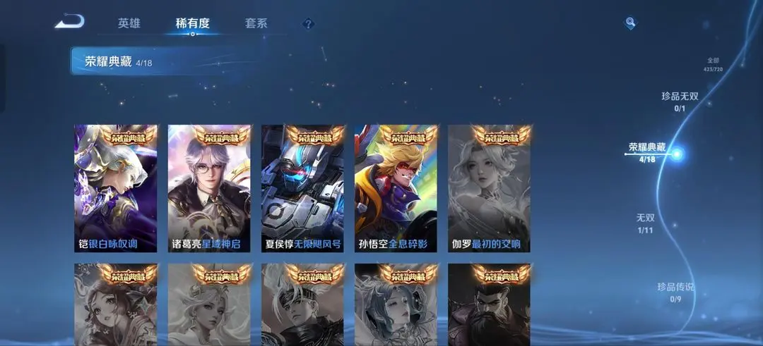 ⚡4典藏⚡44传说⚡区标⚡青丘九尾⚡暗影游猎⚡齐天大圣⚡时之祈愿⚡凤求凰⚡一全息碎影