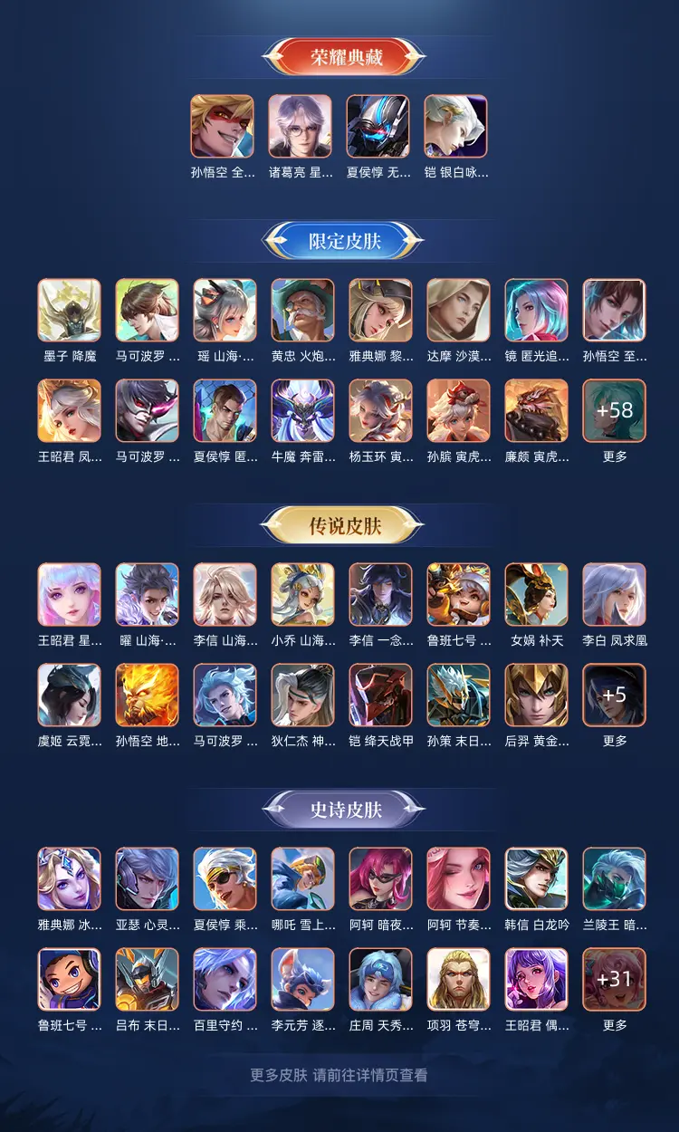 本游戏账号: V10用户,基础段位:永恒钻石,英雄多,皮肤多。典藏皮肤4个,感受典藏皮肤带来的优质体验快感,FMVP皮肤4个,尽情享受FMVP皮肤带来的主角光环, 私人所属英雄皮肤有:孙悟空 全息碎影||诸葛亮 星域神启||夏侯惇 无限飓风号||铠 银白咏叹调孙悟空 齐天大圣||孙悟空 地狱火||马可波罗 妄想实况||马可波罗 深海之息||诸葛亮 鹤羽星尊||孙尚香 末日机甲||铠 绛天战甲||李信 山海·炽霜斩||李信 一念神魔||妲己 青丘·九尾||李白 凤求凰||虞姬 无限倾心||虞姬 启明星使||虞姬 云霓雀翎||曜 山海·苍雷引||项羽 无限倾心||不知火舞 绯月行||裴擒虎 寅虎·赤拳||夏洛特 浮生妄||张飞 百相守梦||澜 电玩·雷克斯||兰陵王 影龙天霄||孙策 末日机甲||后羿 黄金射手座||艾琳 觅芳踪||女娲 补天||鲁班七号 寅虎·瑞焰||狄仁杰 神器·狴犴令||狄仁杰 超时空战士||亚瑟 追逃游戏||百里守约 碎云||小乔 山海·琳琅生||安琪拉 追逃