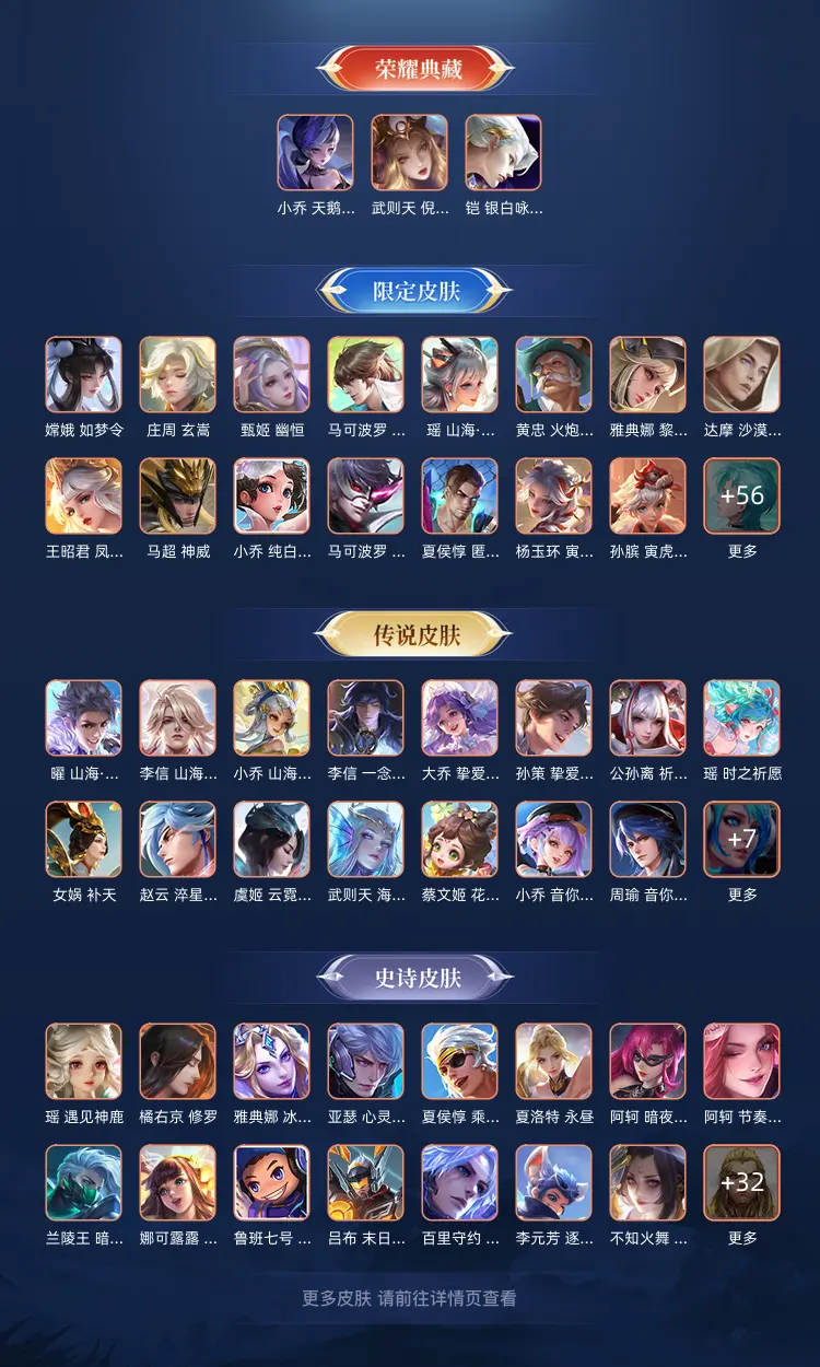 本游戏账号: V10用户,基础段位:最强王者,英雄多,皮肤多。典藏皮肤2个,感受典藏皮肤带来的优质体验快感,FMVP皮肤6个,尽情享受FMVP皮肤带来的主角光环, 私人所属英雄皮肤有:小乔 天鹅之梦||武则天 倪克斯神谕小乔 山海·琳琅生||小乔 音你心动||马超 琥珀纪元||妲己 青丘·九尾||吕布 曦玄引||诸葛亮 武陵仙君||武则天 海洋之心||曜 山海·苍雷引||公孙离 祈雪灵祝||瑶 时之祈愿||孙尚香 乘龙·问璇玑||孙尚香 末日机甲||亚连 落雪白狼||虞姬 启明星使||虞姬 云霓雀翎||兰陵王 默契交锋||貂蝉 曦玄引||貂蝉 遇见胡旋||貂蝉 仲夏夜之梦||女娲 补天||孙策 乘龙·淬吴钩||孙策 挚爱之约||李信 山海·炽霜斩||李信 一念神魔||蔡文姬 花朝如约||大乔 时之奇旅||大乔 挚爱花嫁||艾琳 觅芳踪||张良 黄金白羊座||赵云 乘龙·铭钟鼎||赵云 淬星耀世||周瑜 音你心动||梦奇 胖达荣荣,等等