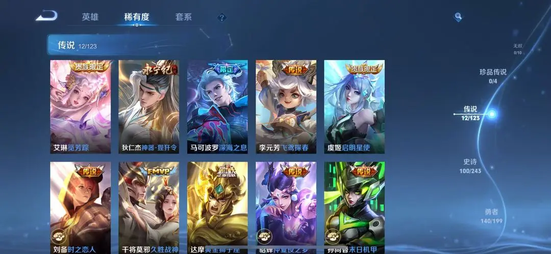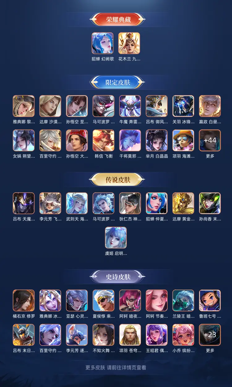 本游戏账号: V10用户,基础段位:最强王者,英雄多,皮肤多。典藏皮肤2个,感受典藏皮肤带来的优质体验快感,FMVP皮肤1个,尽情享受FMVP皮肤带来的主角光环, 私人所属英雄皮肤有:貂蝉 幻阙歌||花木兰 九霄神辉孙尚香 末日机甲||吕布 天魔缭乱||马可波罗 深海之息||狄仁杰 神器·狴犴令||达摩 黄金狮子座||武则天 海洋之心||貂蝉 仲夏夜之梦||艾琳 觅芳踪||李元芳 飞鸢探春||虞姬 启明星使,等等
