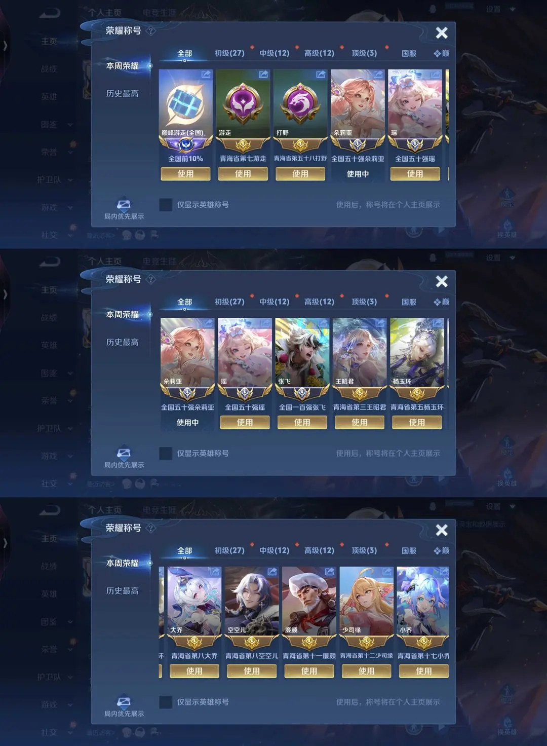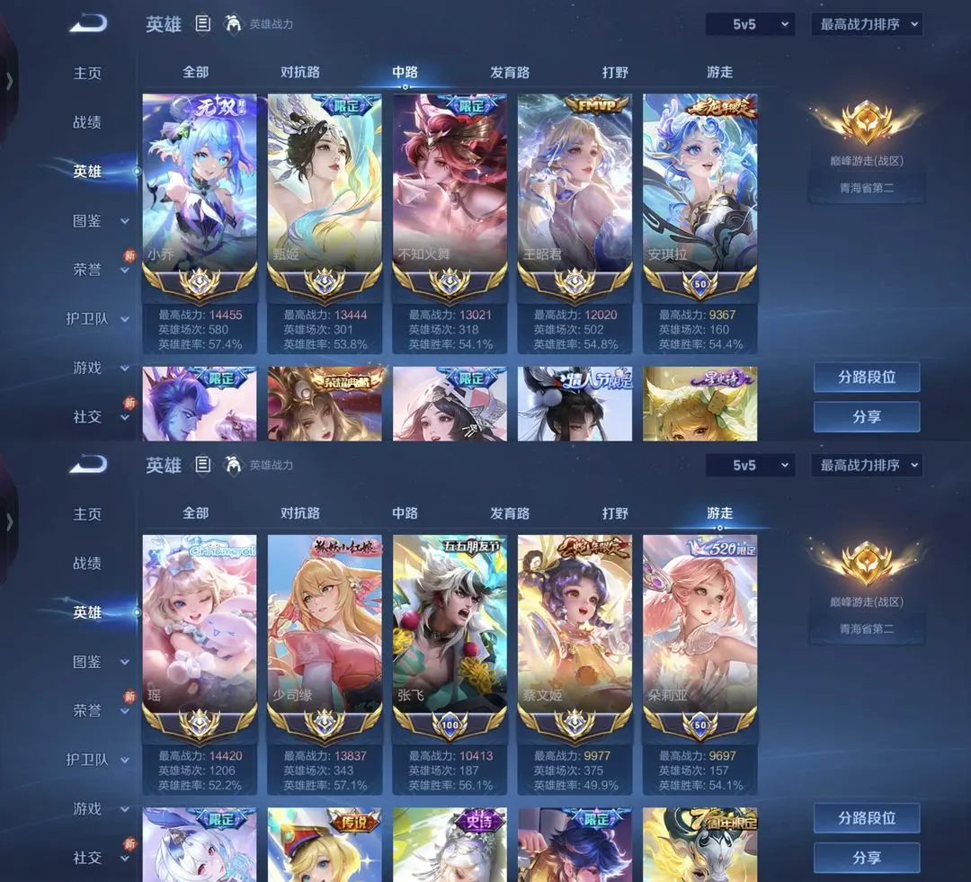女号❤️二月三个在榜小国标瑶朵莉亚张飞+12个省标❤️巅峰历9大国服少司缘小乔火舞甄姬大乔王昭君