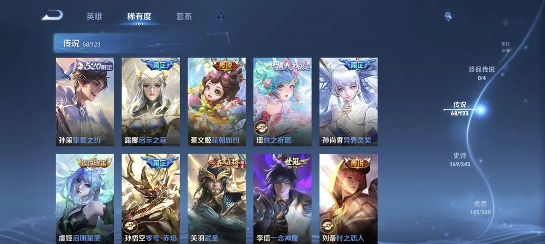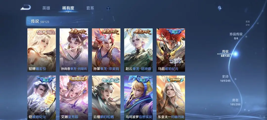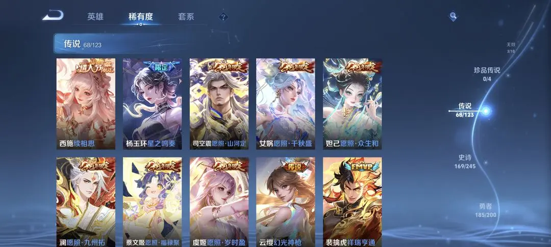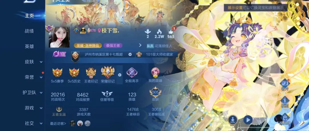 本游戏账号: V10用户,基础段位:永恒钻石II,英雄多,皮肤多。典藏皮肤5个,感受典藏皮肤带来的优质体验快感,FMVP皮肤5个,尽情享受FMVP皮肤带来的主角光环, 私人所属英雄皮肤有:小乔 天鹅之梦||瑶 拾光映像||李白 鸣剑·曳影||花木兰 九霄神辉||虞姬 神鉴启示录小乔 山海·琳琅生||瑶 时之祈愿||蔡文姬 愿照·福禄聚||不知火舞 绯月行||王昭君 乞巧织情||王昭君 永恒水手月亮||妲己 愿照·众生和||澜 愿照·九州拓||周瑜 音你心动||貂蝉 仲夏夜之梦||孙膑 小动物乐团||曜 李逍遥||露娜 霜月吟||孙尚香 乘龙·问璇玑||杨玉环 星之鸣奏||后羿 黄金射手座||虞姬 愿照·岁时盈||虞姬 云霓雀翎||虞姬 无限倾心||虞姬 启明星使||公孙离 祈雪灵祝||桑启 鸣野蒿||伽罗 太华||艾琳 觅芳踪||庄周 牧神诗旅||夏洛特 浮生妄||百里守约 碎云||云缨 幻光神枪||赵云 淬星耀世||梦奇 胖达荣荣||云中君 群星魔术团,等等