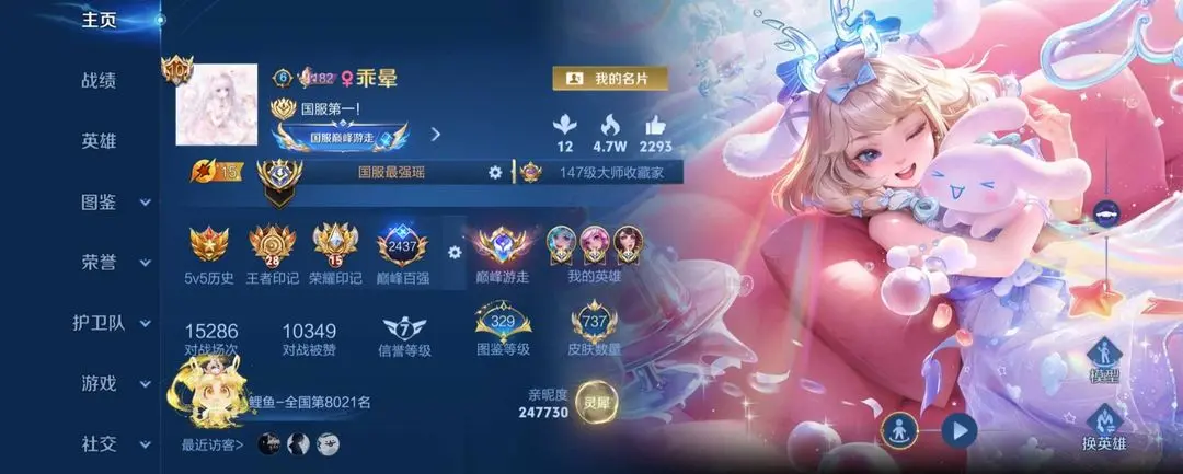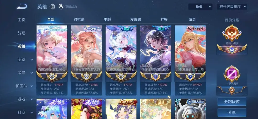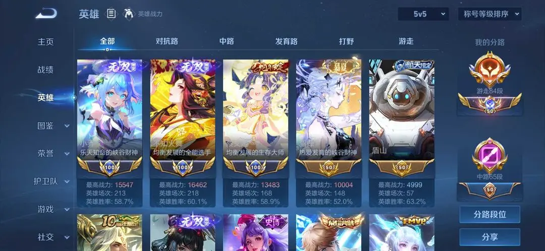 本游戏账号: V10荣耀贵族用户,基础段位:最强王者,英雄多,皮肤多。典藏皮肤17个,感受典藏皮肤带来的优质体验快感,FMVP皮肤10个,尽情享受FMVP皮肤带来的主角光环, 私人所属英雄皮肤有:瑶 拾光映像||虞姬 神鉴启示录||关羽 赤影疾锋||芈月 大秦宣太后||夏侯惇 无限飓风号||程咬金 活力突击||孙悟空 全息碎影||韩信 弑枪猎影||孙尚香 杀手不太冷||鲁班七号 星空梦想||诸葛亮 星域神启||貂蝉 幻阙歌||铠 银白咏叹调||花木兰 九霄神辉||武则天 倪克斯神谕||小乔 天鹅之梦||李白 鸣剑·曳影,等等