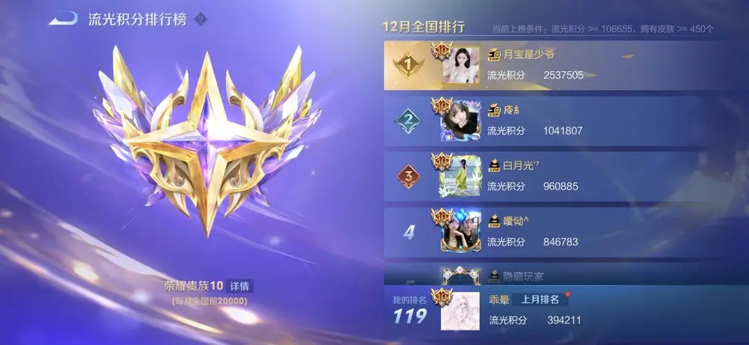 12月在榜巅峰第8三大国服瑶大桥朵莉亚巅峰前十游走游走大国巅峰万强2437禁巅可排位金灵宝满按键女