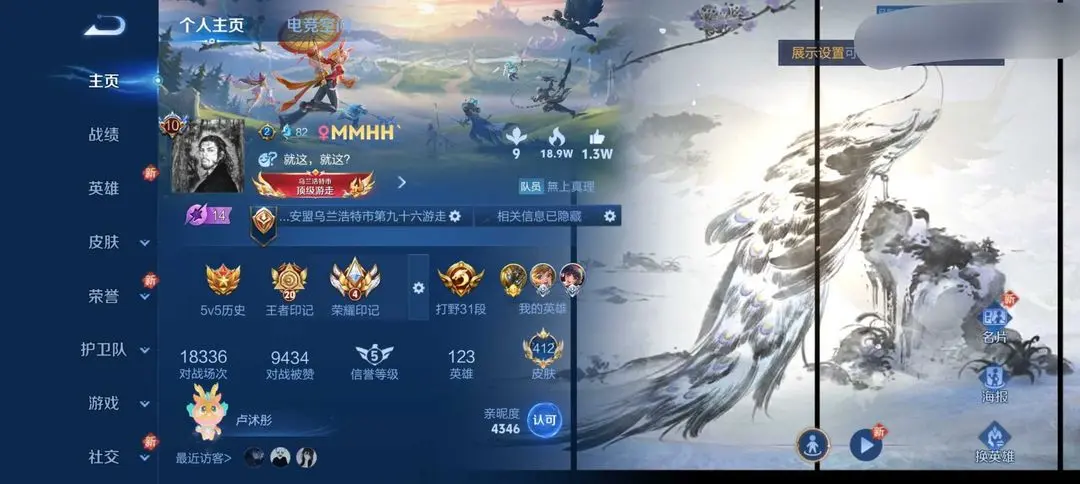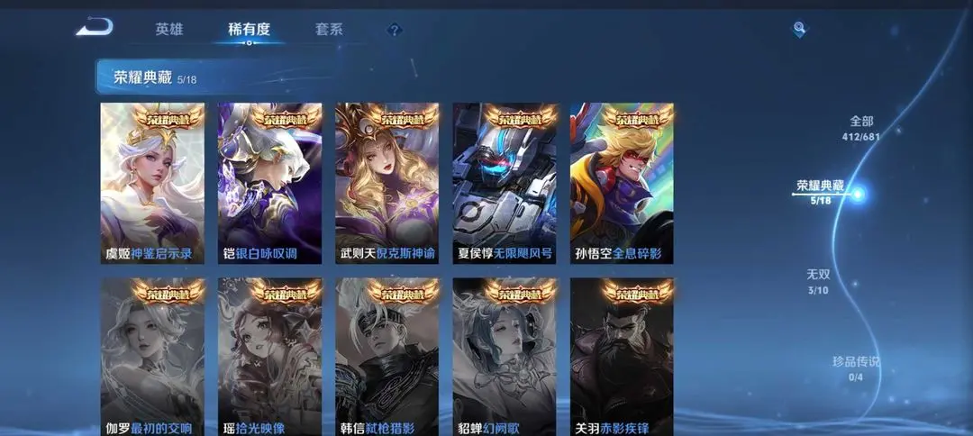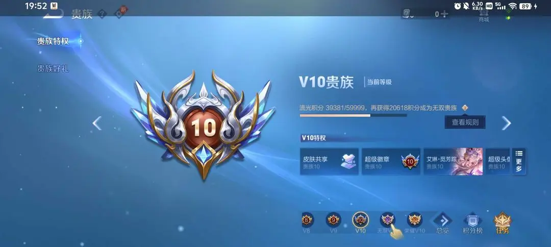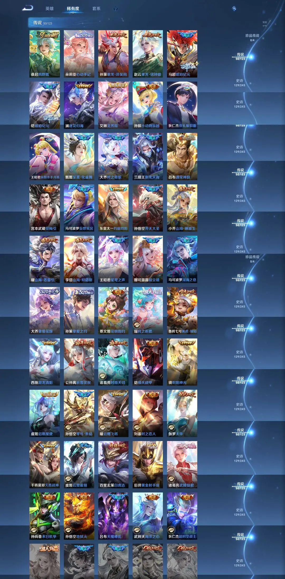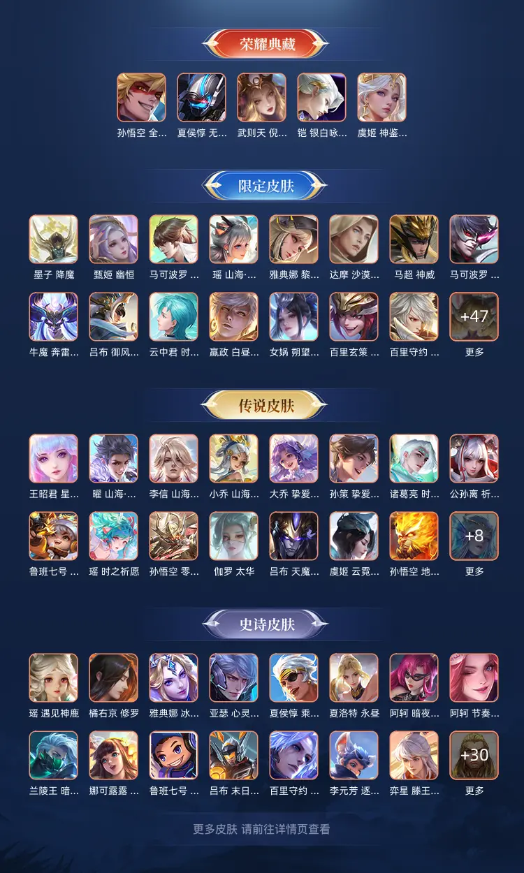 本游戏账号: V10用户,基础段位:永恒钻石I,英雄多,皮肤多。典藏皮肤5个,感受典藏皮肤带来的优质体验快感,FMVP皮肤6个,尽情享受FMVP皮肤带来的主角光环, 私人所属英雄皮肤有:铠 银白咏叹调||夏侯惇 无限飓风号||武则天 倪克斯神谕||孙悟空 全息碎影||虞姬 神鉴启示录诸葛亮 时雨天司||诸葛亮 武陵仙君||大乔 挚爱花嫁||大乔 时之奇旅||铠 绛天战甲||公孙离 祈雪灵祝||孙尚香 末日机甲||鲁班七号 寅虎·瑞焰||孙策 挚爱之约||孙策 乘龙·淬吴钩||孙膑 小动物乐团||马超 琥珀纪元||吕布 天魔缭乱||吕布 遇见神鼓||曜 山海·苍雷引||宫本武藏 惊梅引||马可波罗 深海之息||马可波罗 妄想实况||狄仁杰 夜礼服假面||狄仁杰 超时空战士||武则天 海洋之心||桑启 鸣野蒿||王昭君 永恒水手月亮||王昭君 星穹之声||兰陵王 影龙天霄||艾琳 觅芳踪||娜可露露 前尘镜||孙悟空 齐天大圣||孙悟空 零号·赤焰||孙悟空 地狱火||后羿 黄金射手