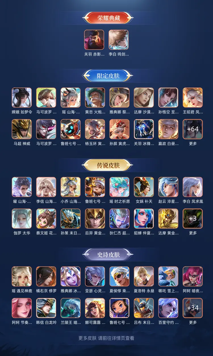 本游戏账号: V10用户,基础段位:至尊星耀II,英雄多,皮肤多。典藏皮肤1个,感受典藏皮肤带来的优质体验快感,FMVP皮肤3个,尽情享受FMVP皮肤带来的主角光环, 私人所属英雄皮肤有:李白 鸣剑·曳影诸葛亮 武陵仙君||梦奇 胖达荣荣||孙尚香 末日机甲||鲁班七号 寅虎·瑞焰||孙策 末日机甲||曜 山海·苍雷引||李白 凤求凰||狄仁杰 超时空战士||达摩 黄金狮子座||桑启 鸣野蒿||貂蝉 仲夏夜之梦||艾琳 觅芳踪||孙悟空 齐天大圣||后羿 黄金射手座||虞姬 启明星使||女娲 补天||蔡文姬 花朝如约||小乔 山海·琳琅生||赵云 淬星耀世||瑶 时之祈愿||李信 山海·炽霜斩||伽罗 太华,等等